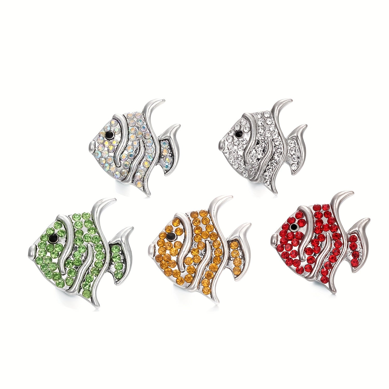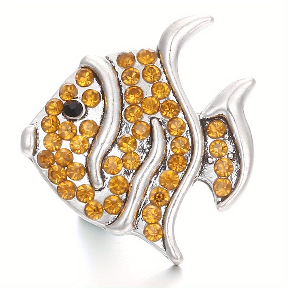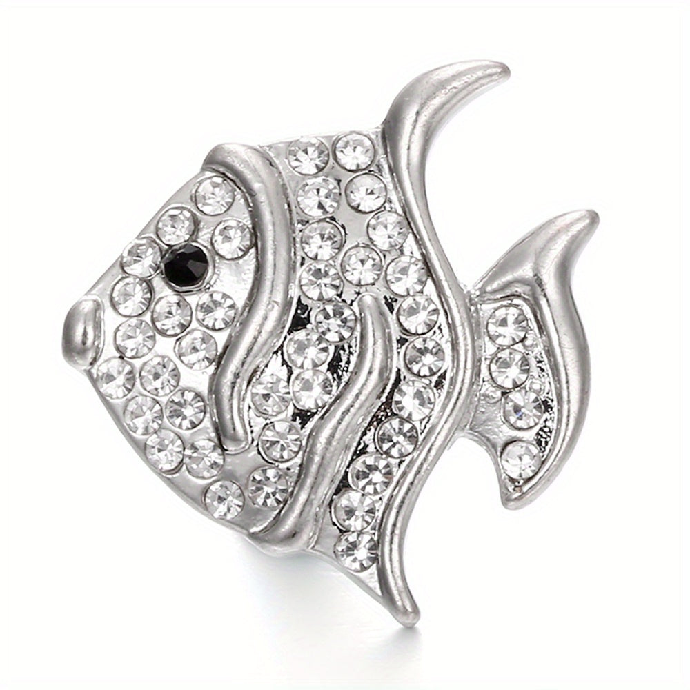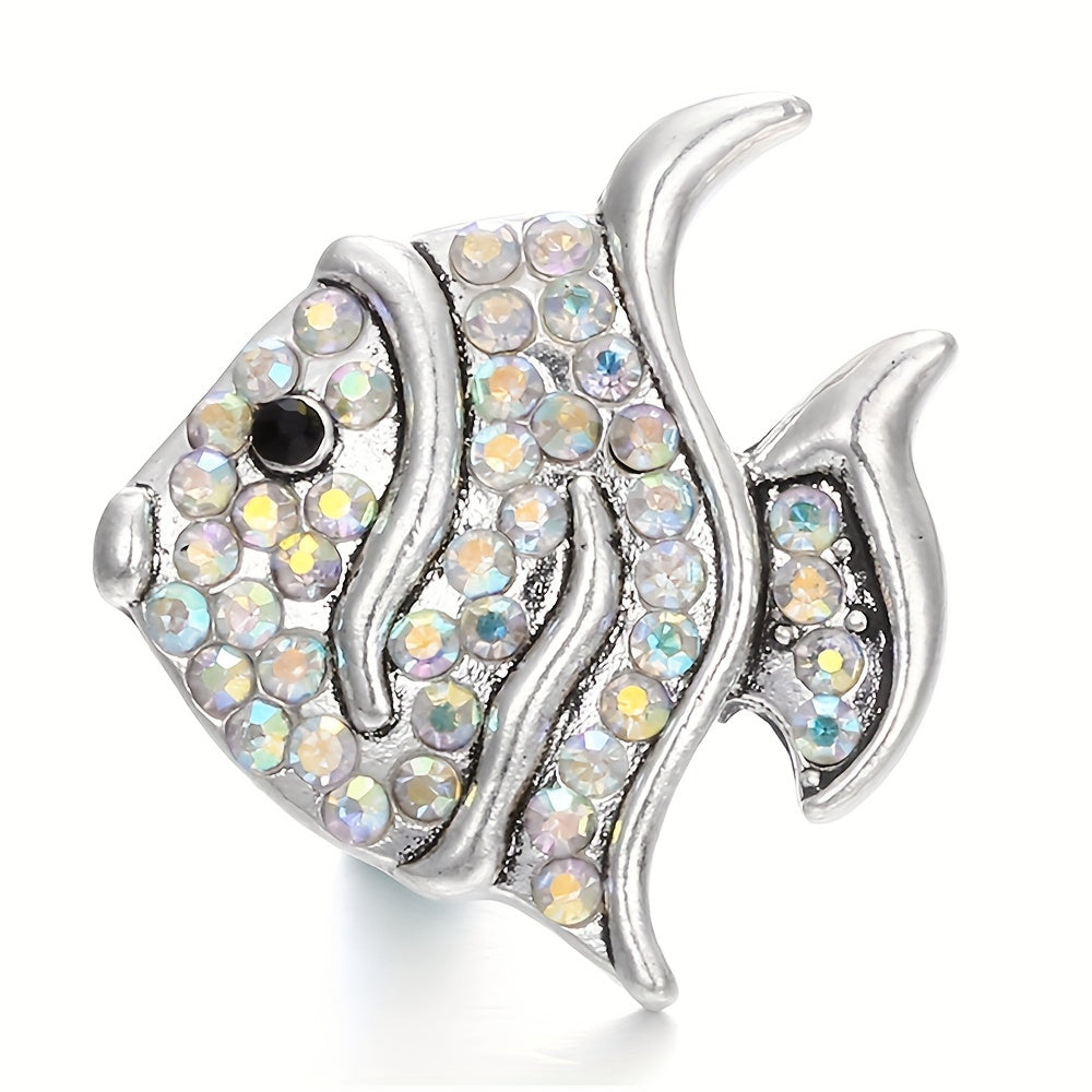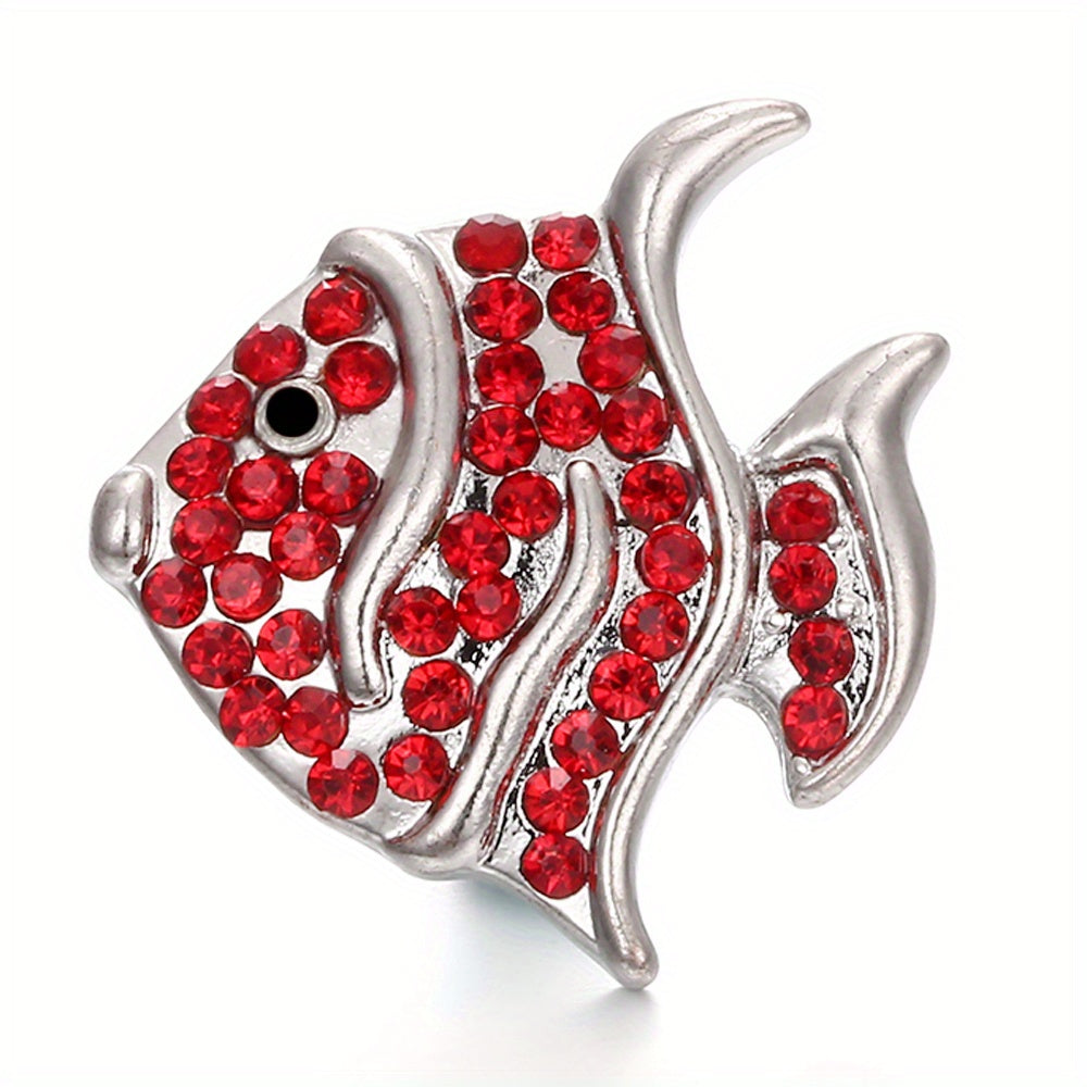 This alloy snap button features a fish shape design studded with colorful rhinestones, perfect for creating custom bracelets, necklaces, and other accessories.
