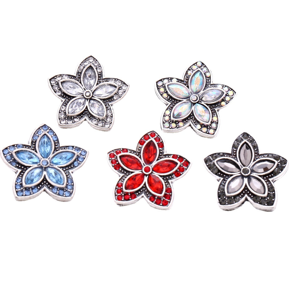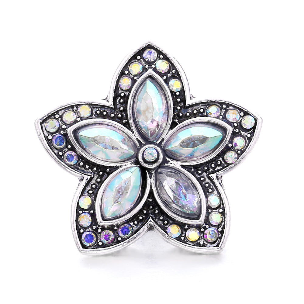 Alloy Flower Snap Button Jewelry with Colorful Rhinestones
