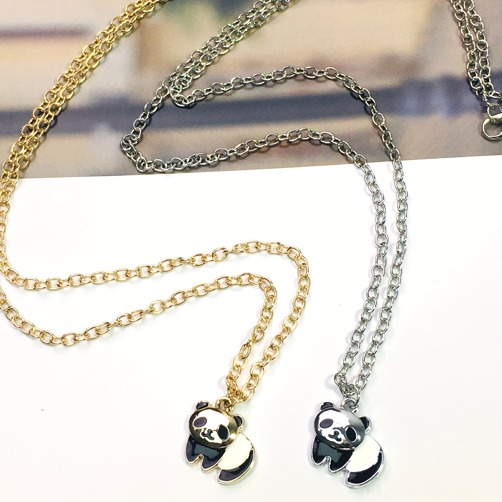 This adorable alloy panda pendant necklace is a perfect accessory for both men and women. It makes a great gift for panda lovers. The necklace is stylish, durable, and eye-catching.