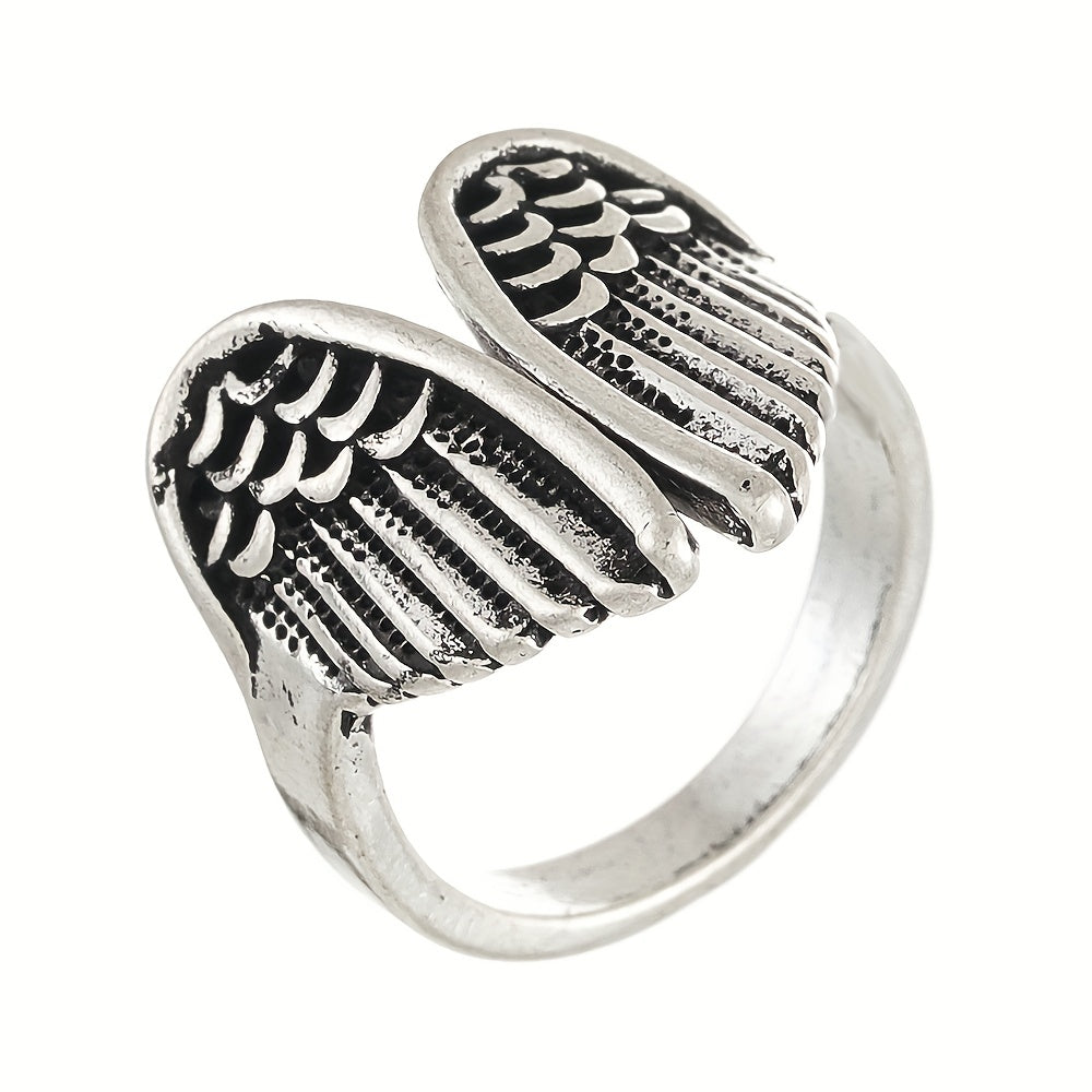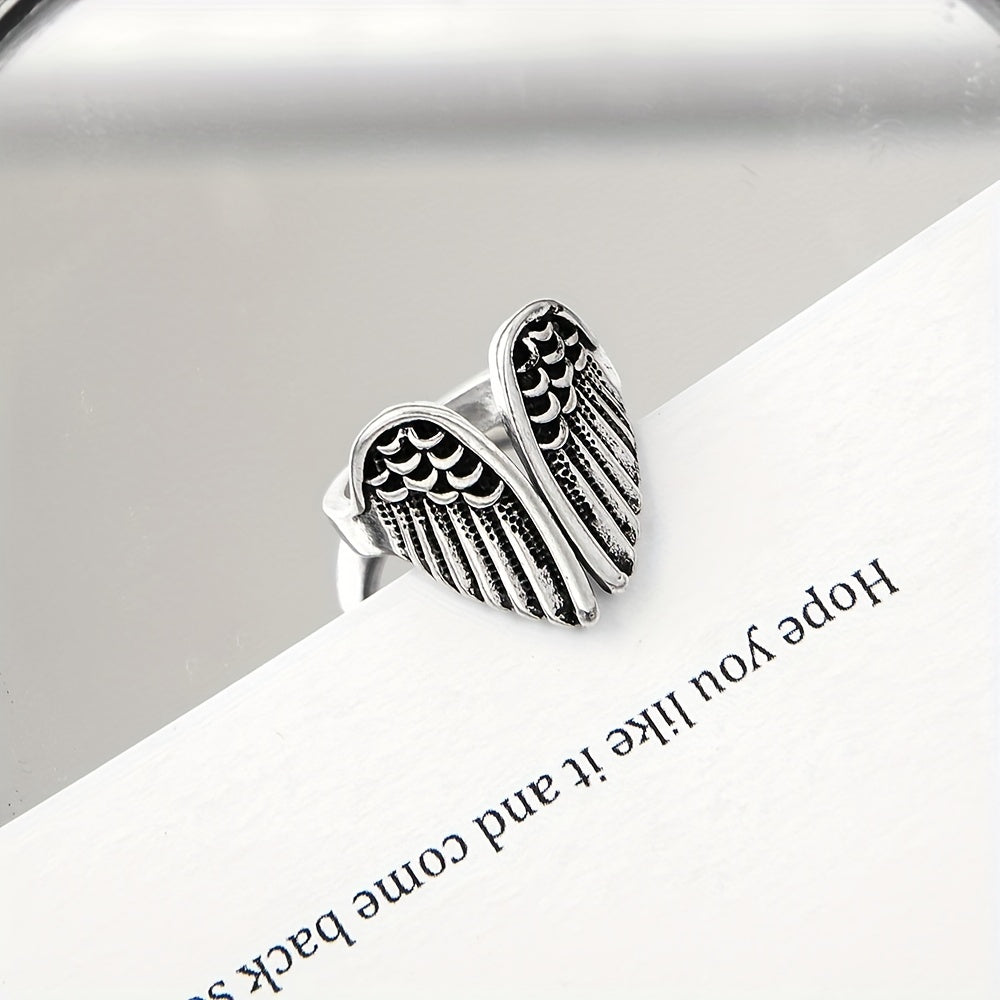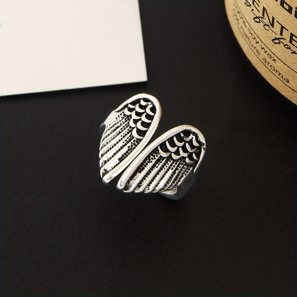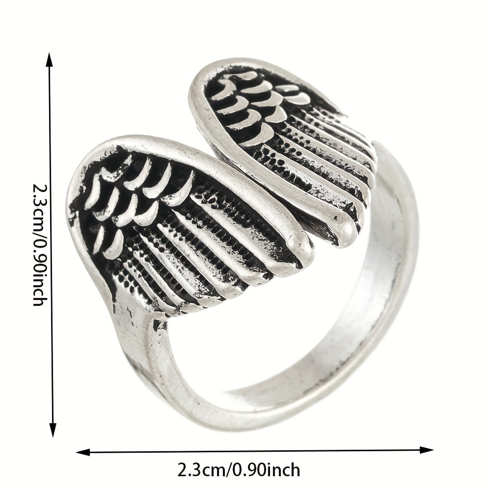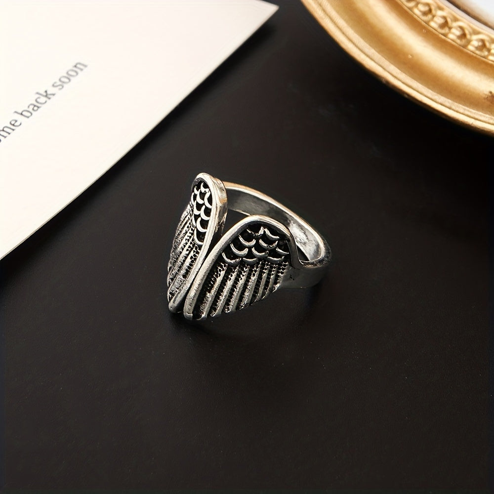 This Angel Wings Ring features a vintage design and is made of high-quality alloy material. It has an adjustable opening, making it suitable for various finger sizes. The ring is a perfect accessory to add a fashionable touch to your outfit.