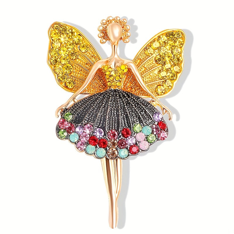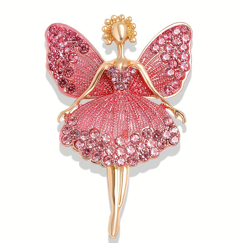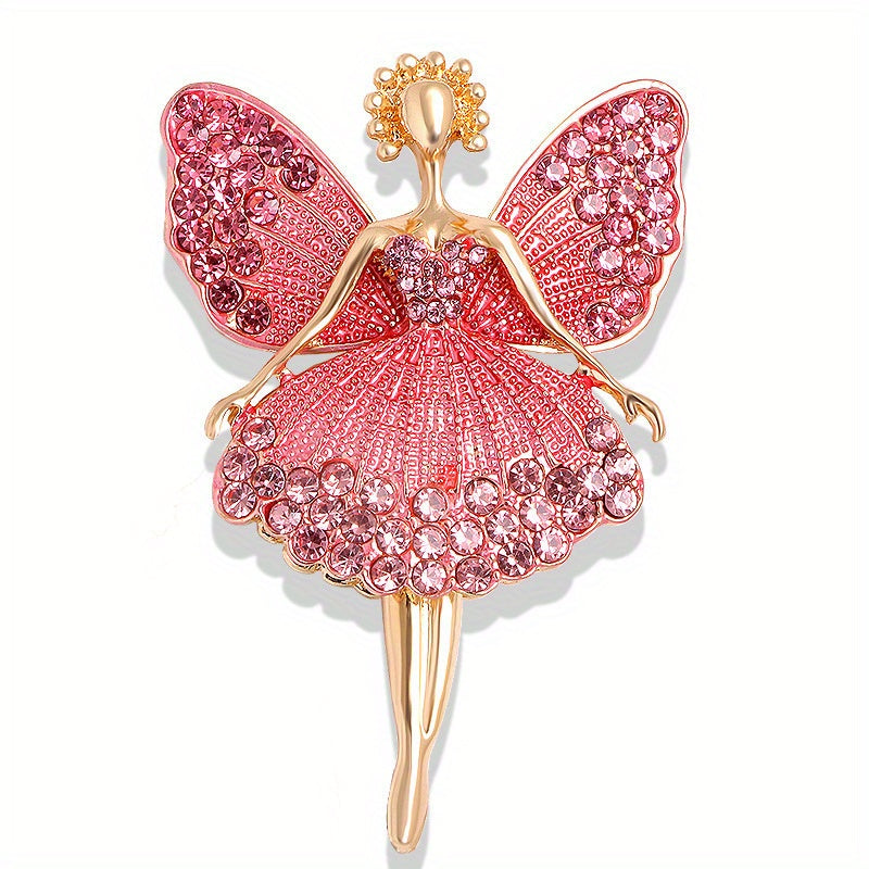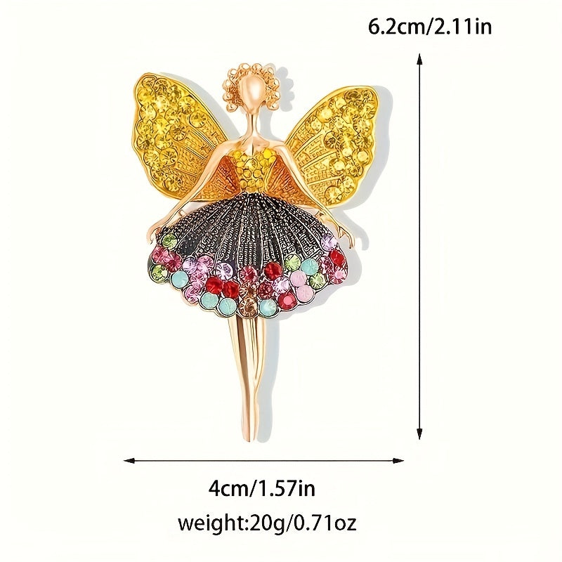 This beautiful brooch features ballet girl design with sparkling rhinestones and golden angel wings. It is perfect for adding a touch of elegance to your clothing.