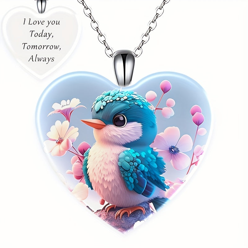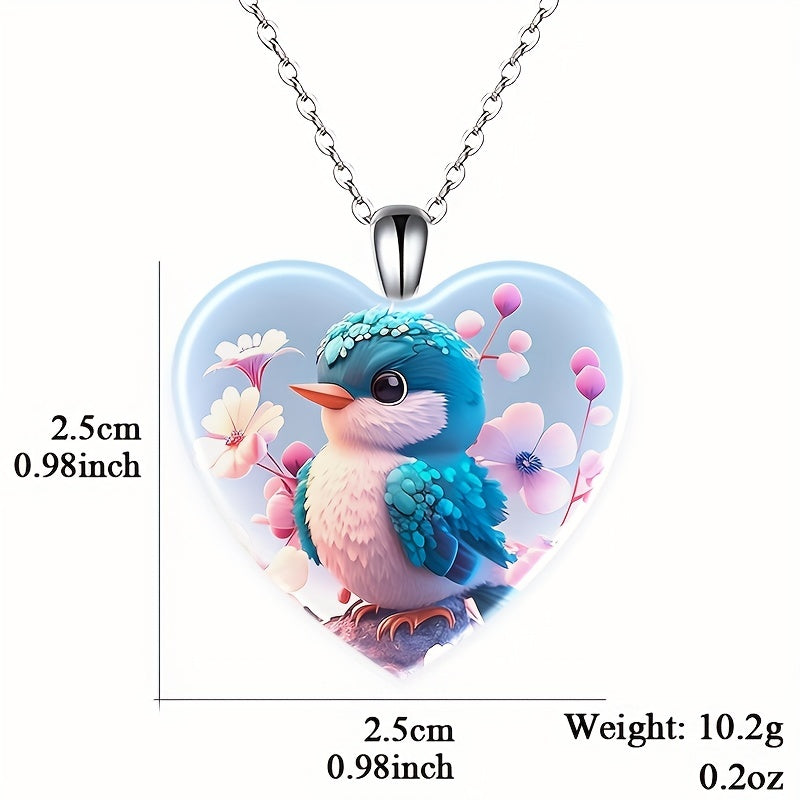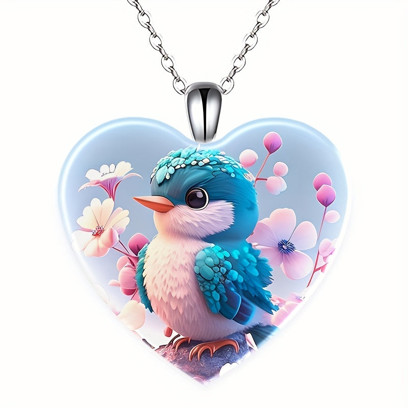 This beautiful pendant necklace features a bird holding a heart-shaped crystal. Perfect for Christmas, holiday parties, or as a gift for someone special.