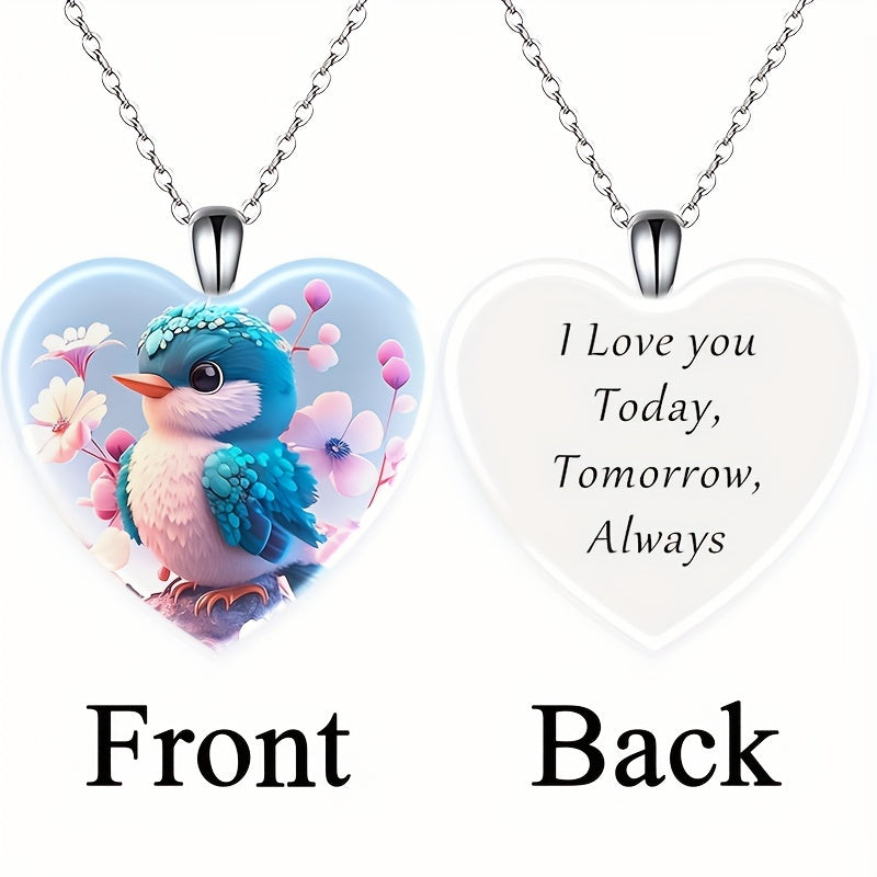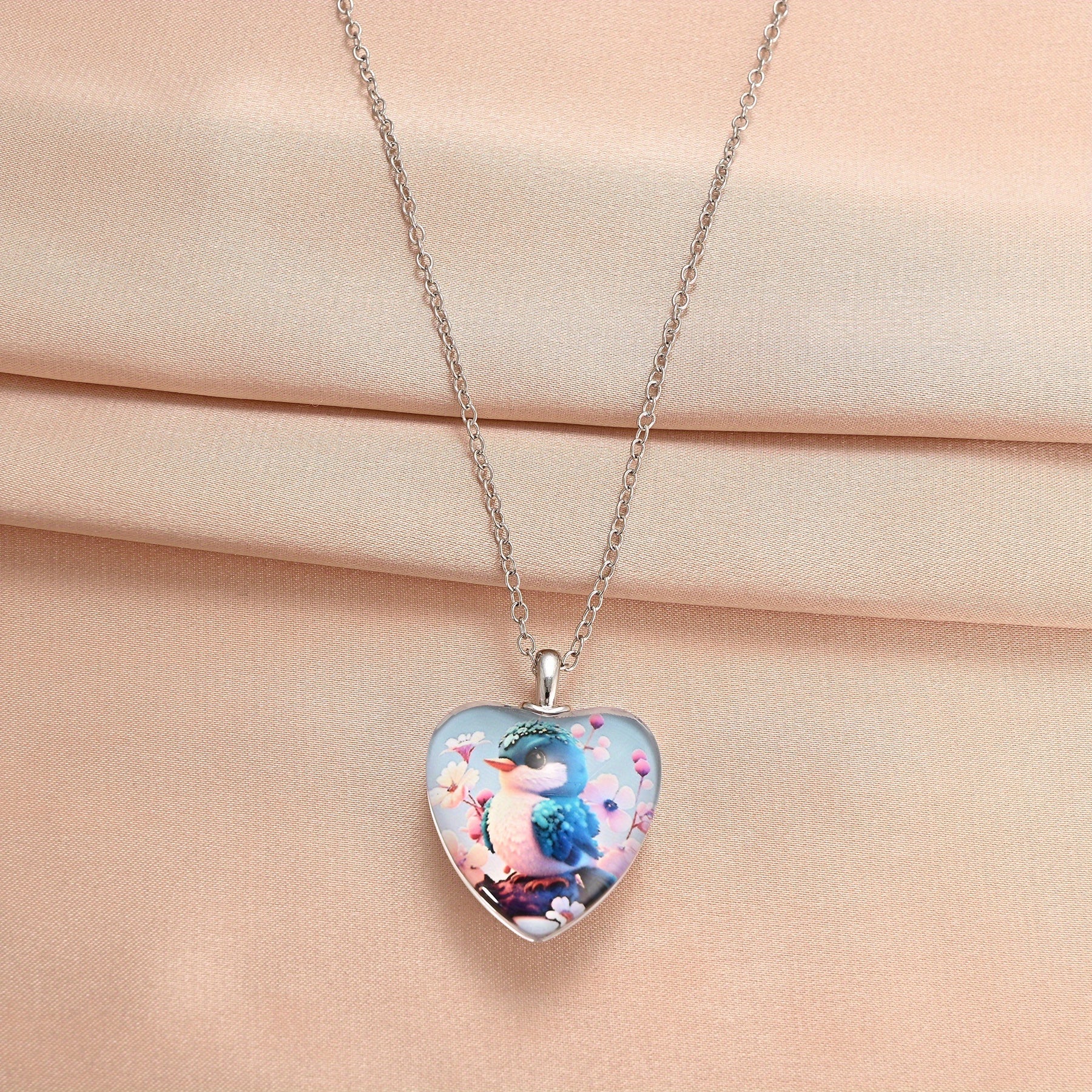 Bird Love Heart Crystal Pendant Necklace For Women Girls