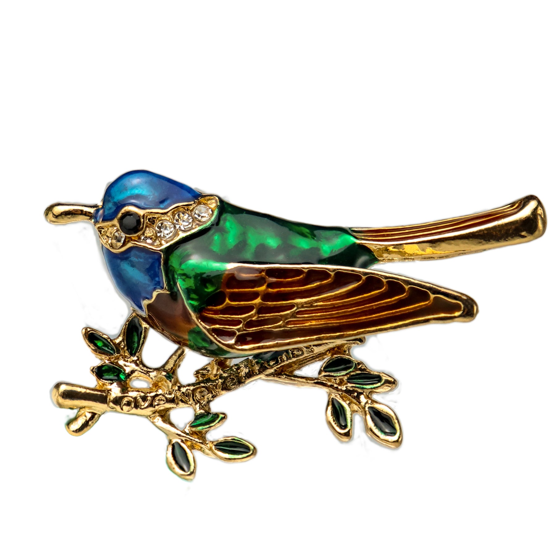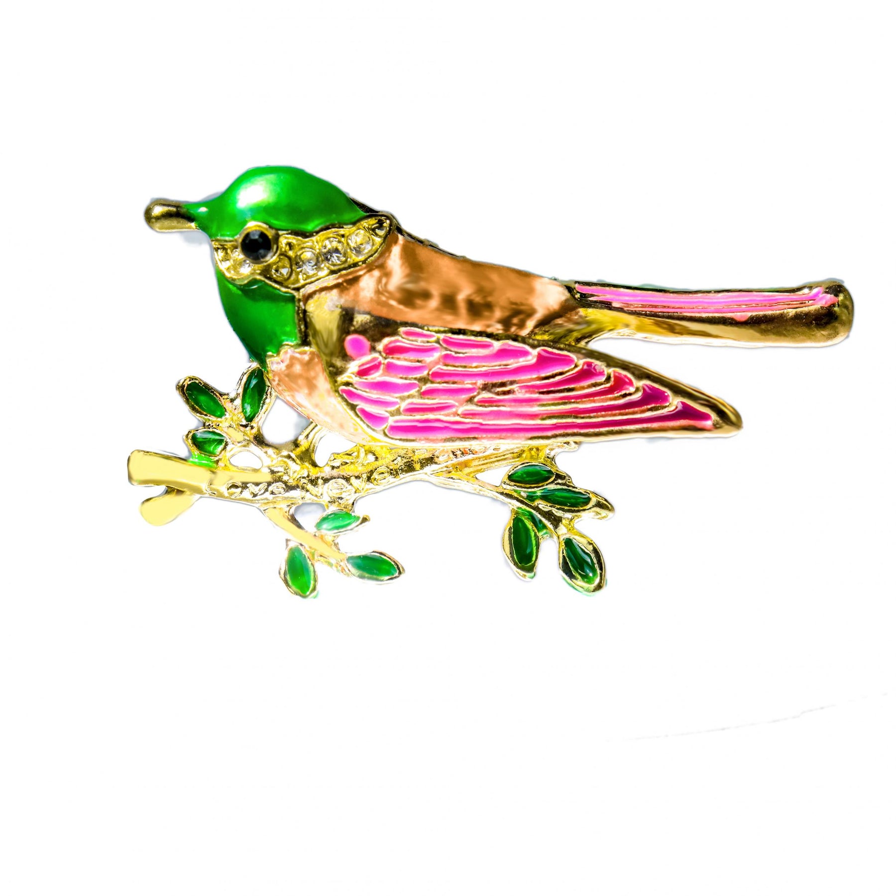 This charming bird-shaped brooch is a perfect accessory for both men and women. Featuring rhinestone detailing, this brooch adds a touch of elegance to any outfit.