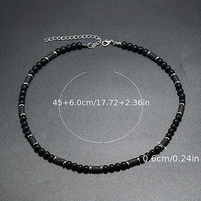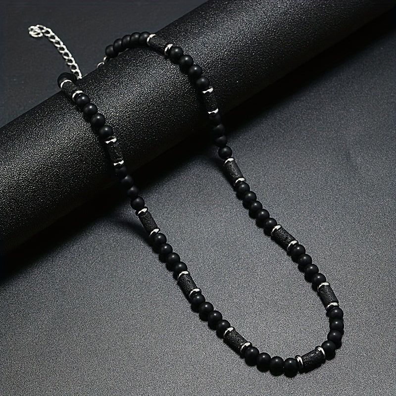 Bohemian Beaded Men's Necklace Volcanic Stone Natural Stone Necklace
