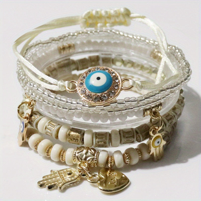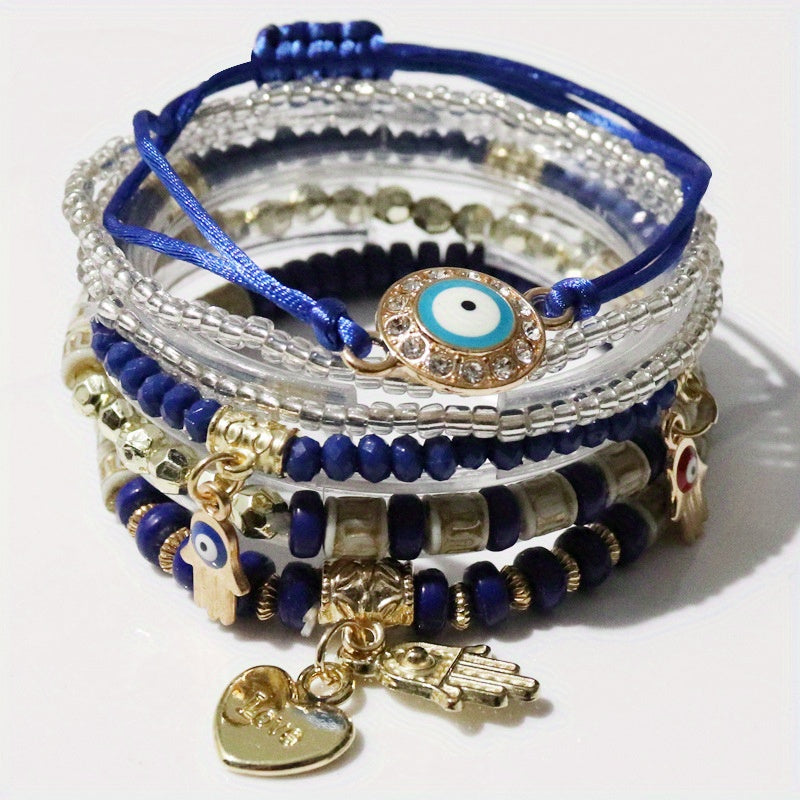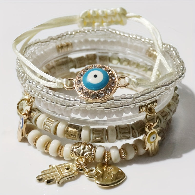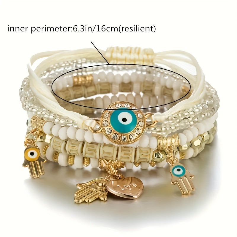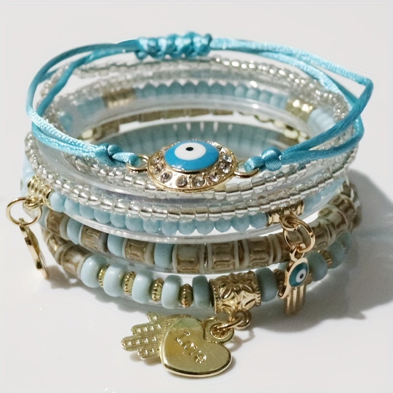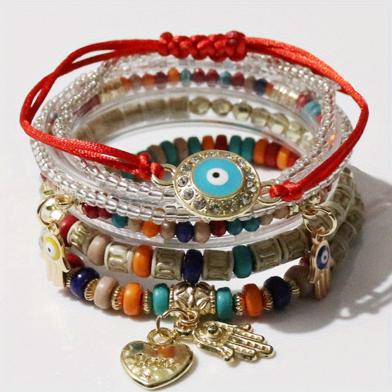 Add a touch of bohemian charm with this layered bracelet featuring beads and a love tag. Perfect for a laid-back yet stylish look.