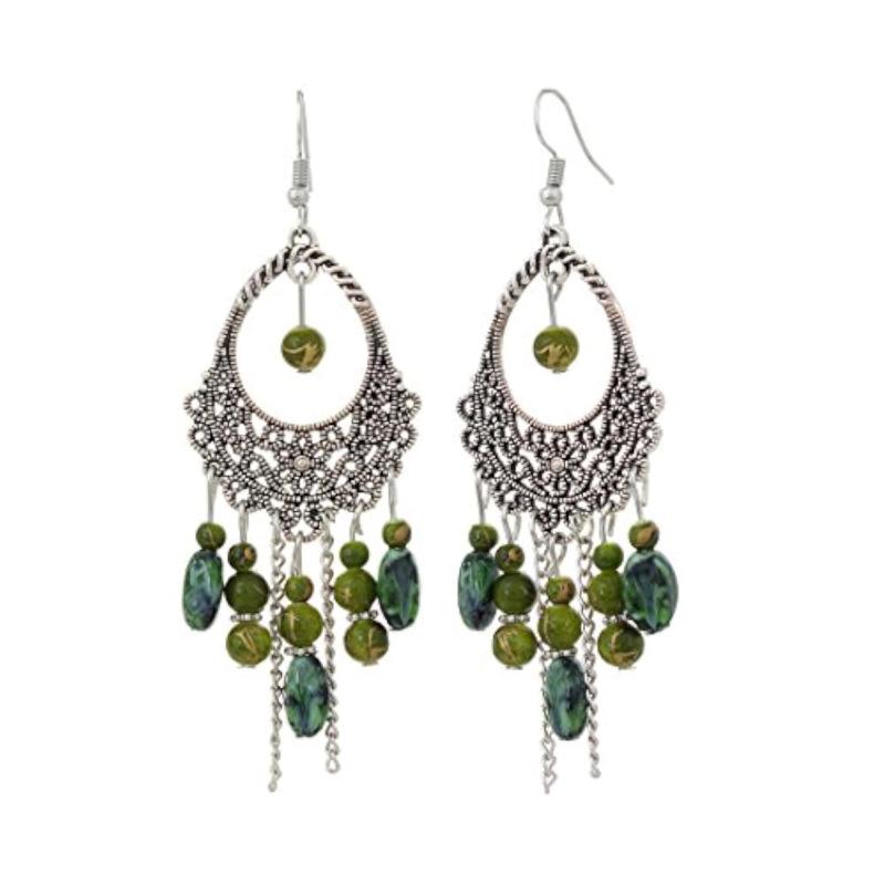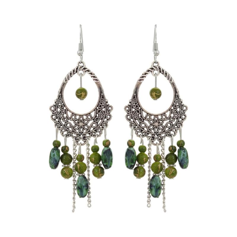 Add a touch of bohemian style to your look with these oxidized silver fancy earrings. These stylish earrings are perfect for adding a bold and unique touch to any outfit.
