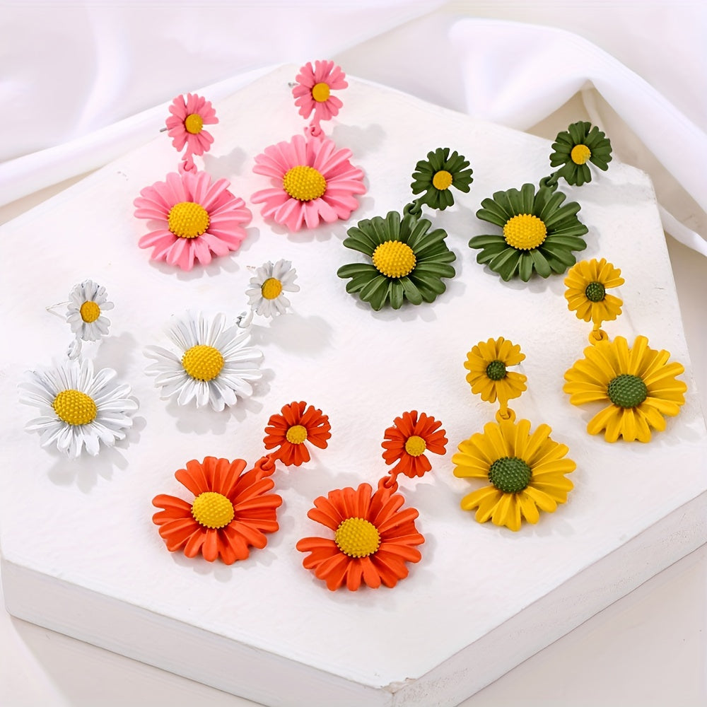 Boho Colorful Chrysanthemum Flower Dangle Earrings Holiday Accessories