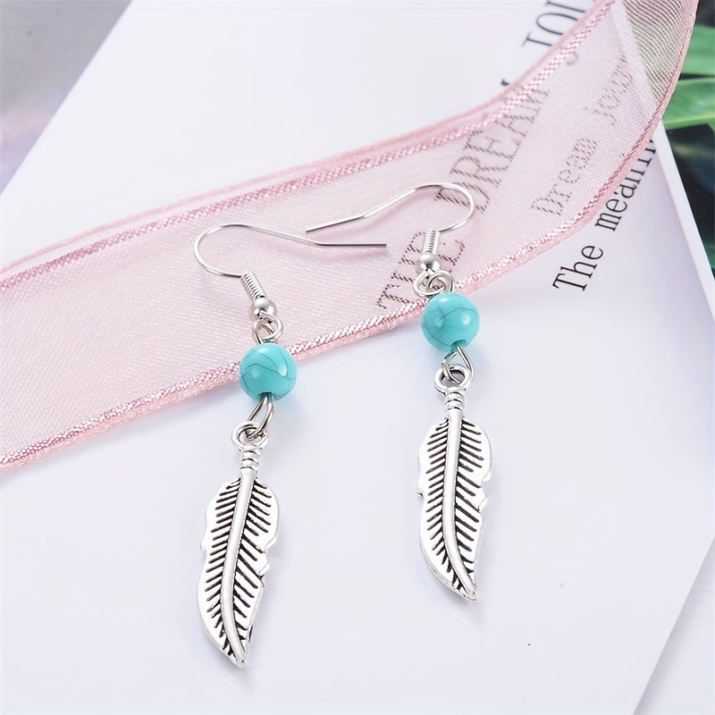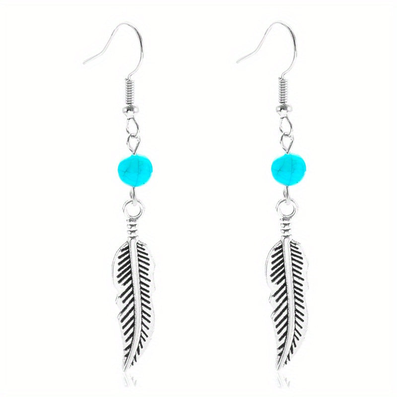 Embrace the bohemian style with these stunning earrings featuring turquoise tassels, patterned leaves, and vintage ethnic hooks.