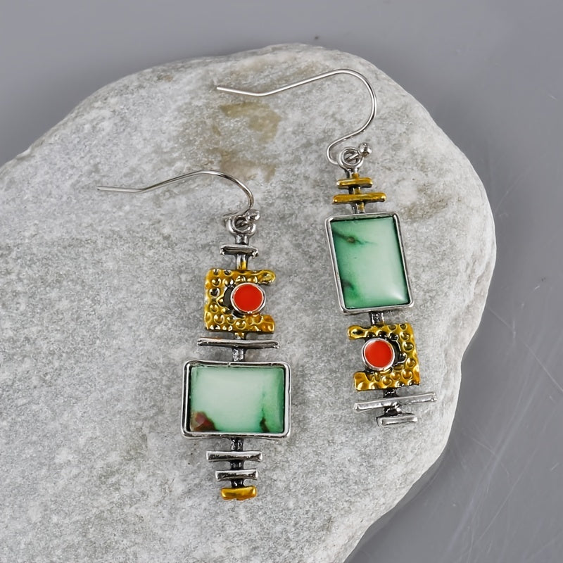 Boho Vintage Geometric Drop Earrings 925 Silver Plated Gemstone