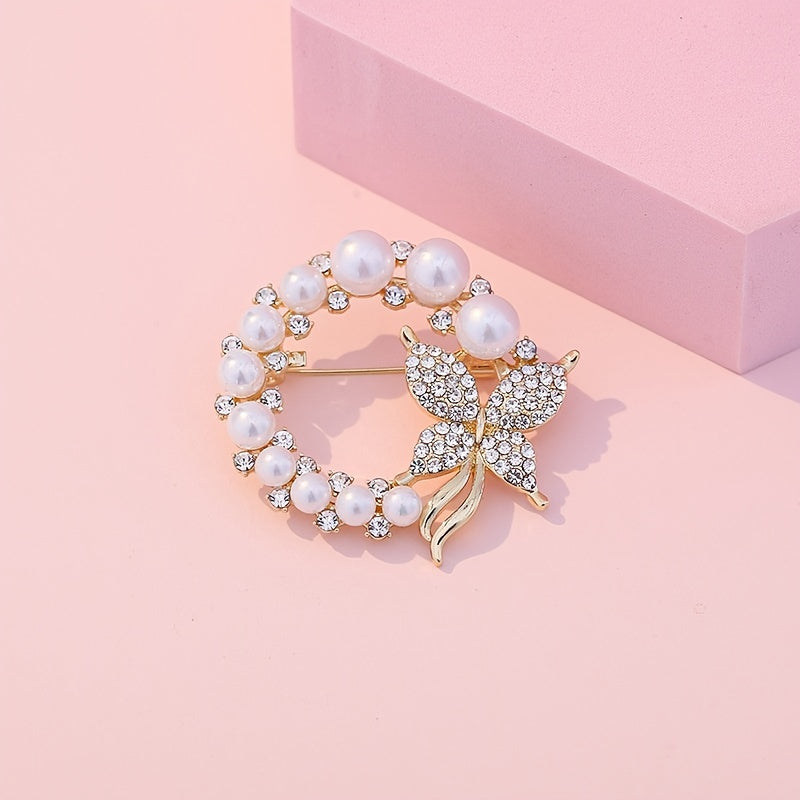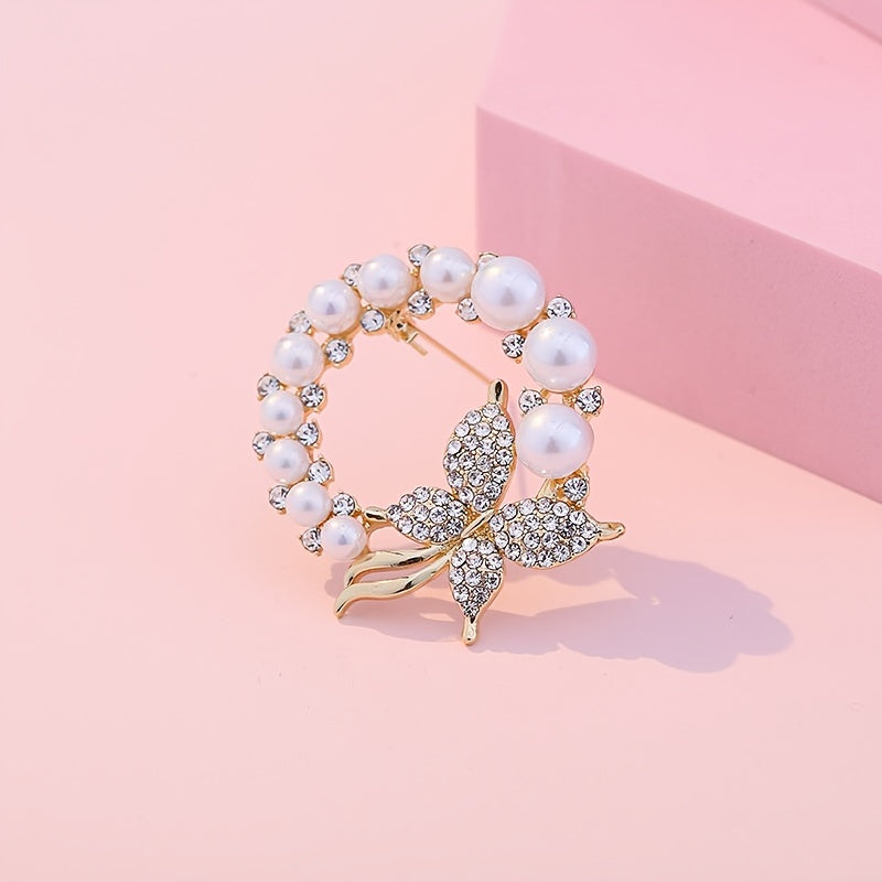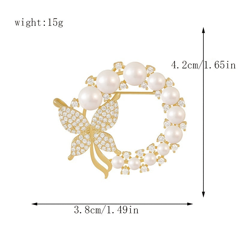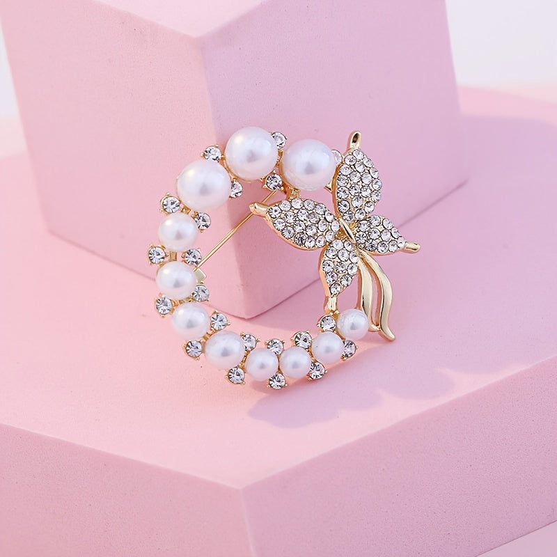 Elegant butterfly brooch featuring faux pearl embellishments, perfect for weddings, banquets, and anniversaries.