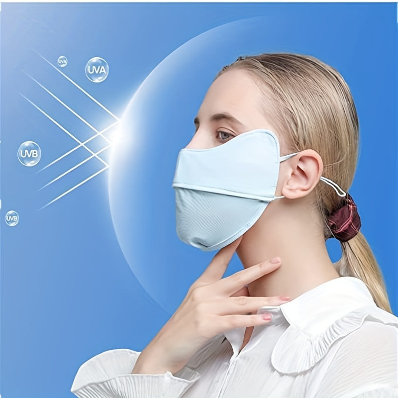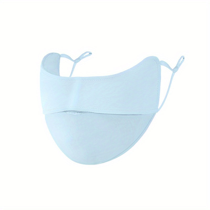 This casual sunshade face mask provides UV protection and is made of ice silk material. It is solid, thin, breathable, reusable, and washable for comfortable wear.