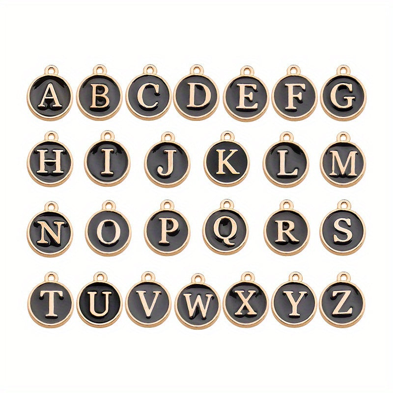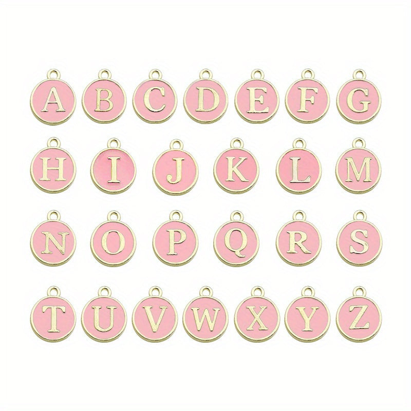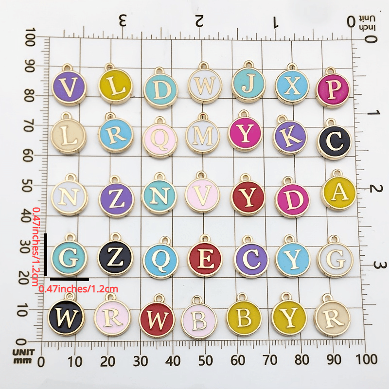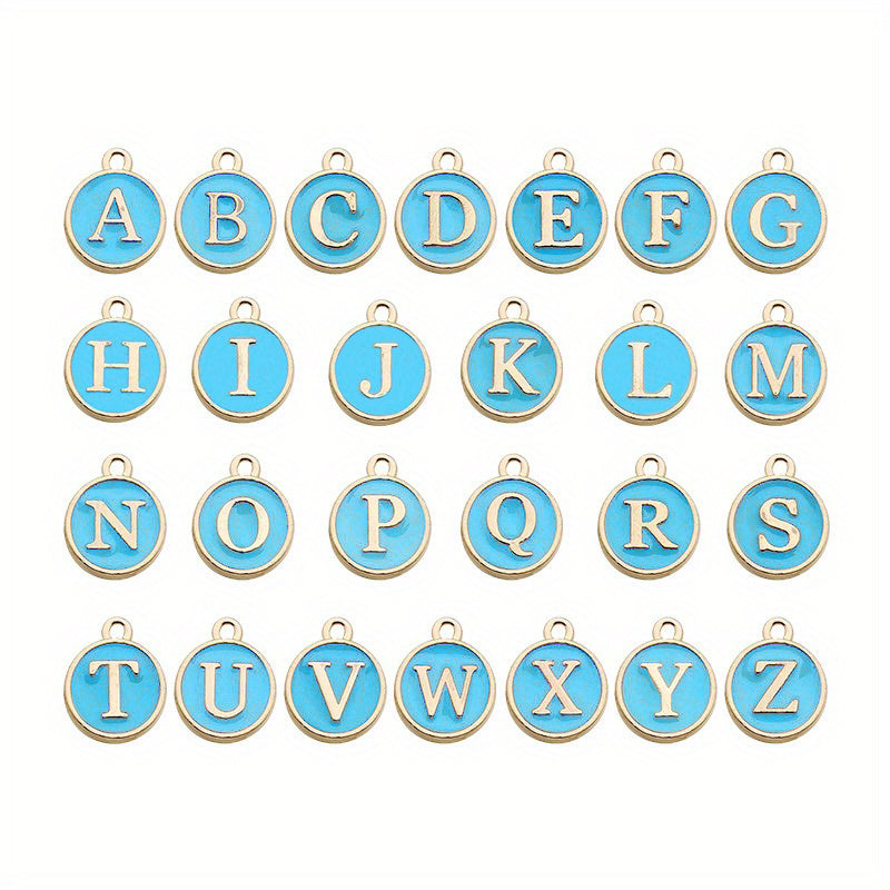 Add a touch of personalization to your handmade accessories with this set of 26 vibrant enamel round alloy pendants featuring English letters. Perfect for creating earrings, bracelets, necklaces, and more.