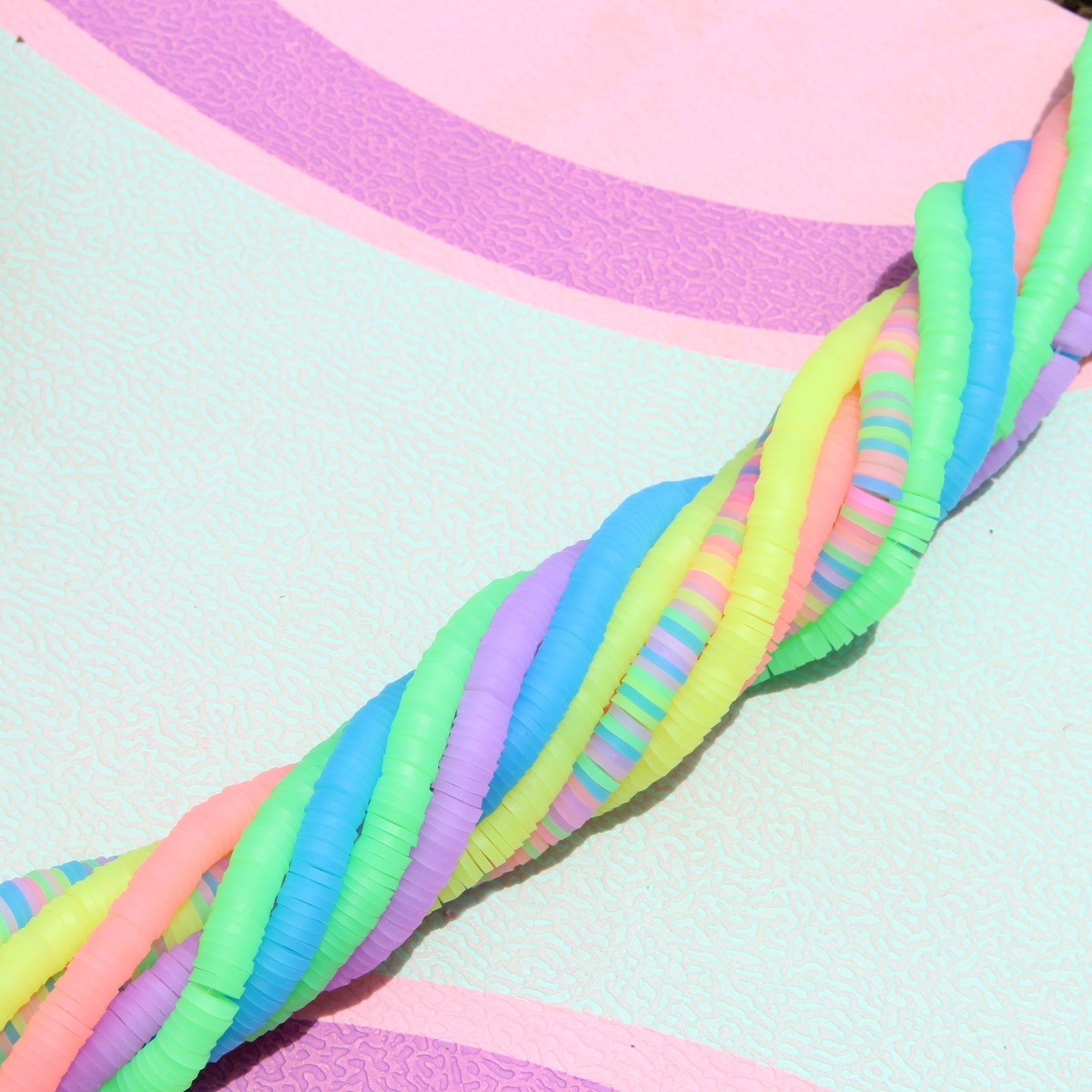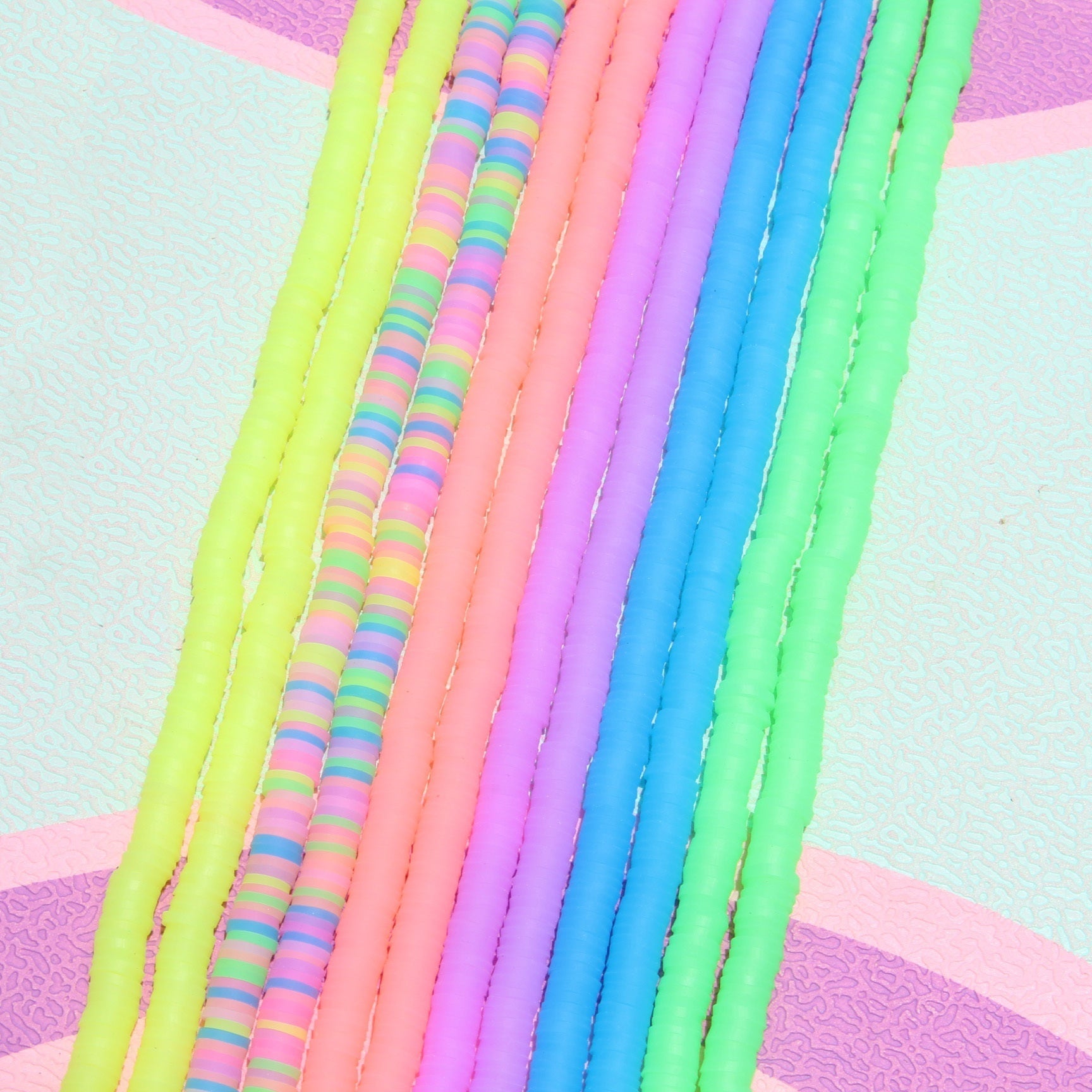 Add a bohemian touch to your jewelry creations with these 6mm colorful flat round polymer clay beads. Use them as spacer beads or primary elements in your bracelets for a vibrant look.