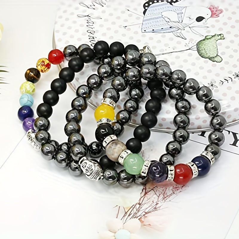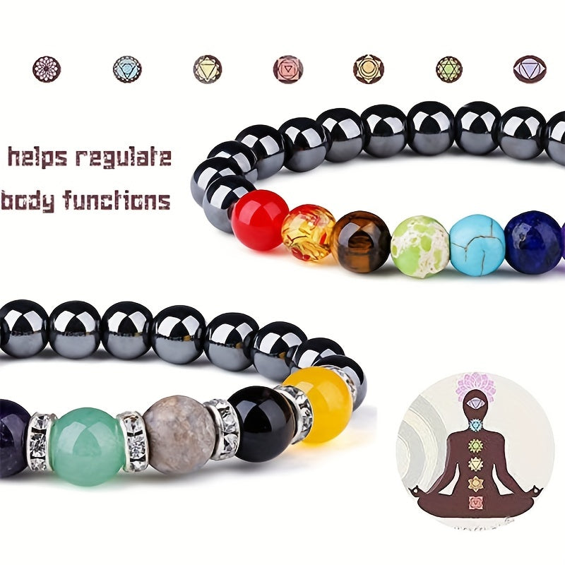 Energize your yoga practice with this colorful pulse gallstone magnet bracelet. It is designed to enhance balance and focus during yoga sessions.