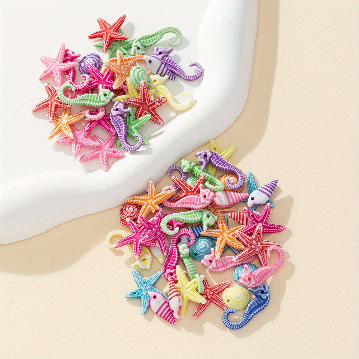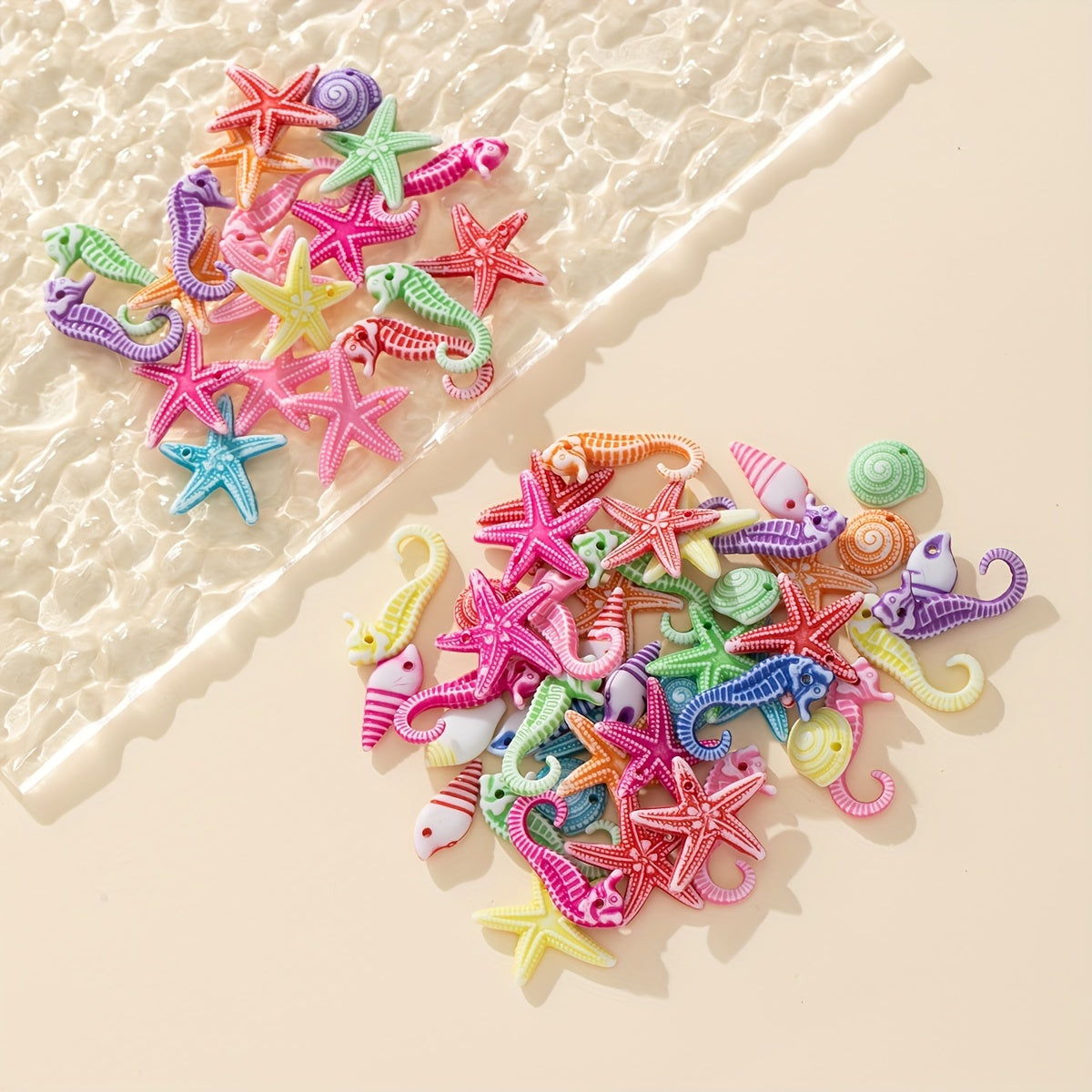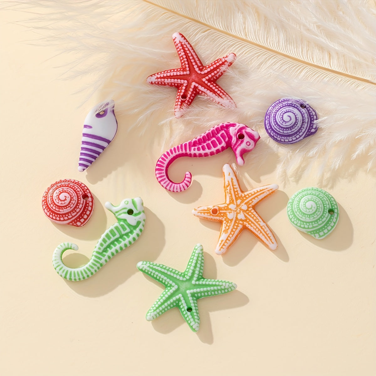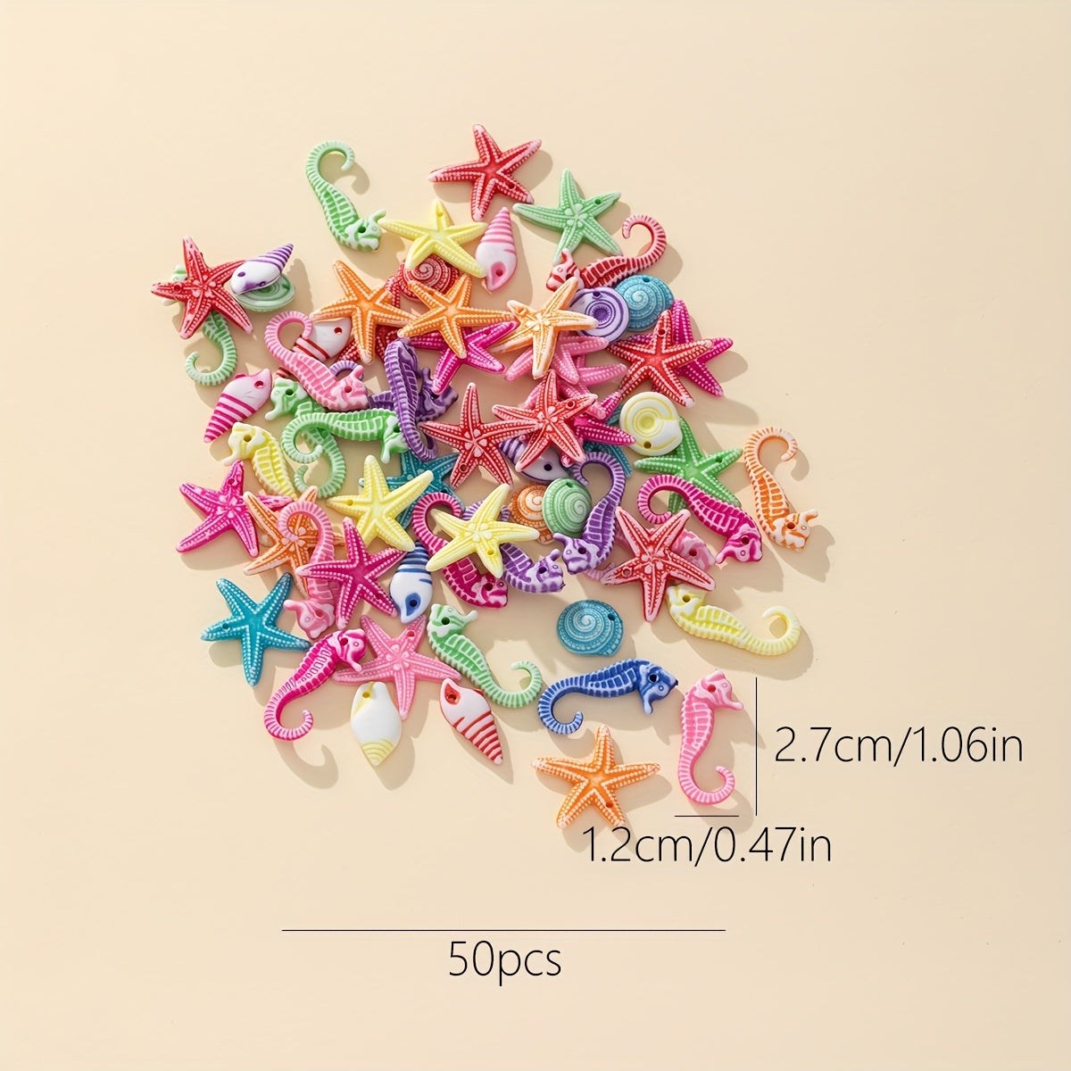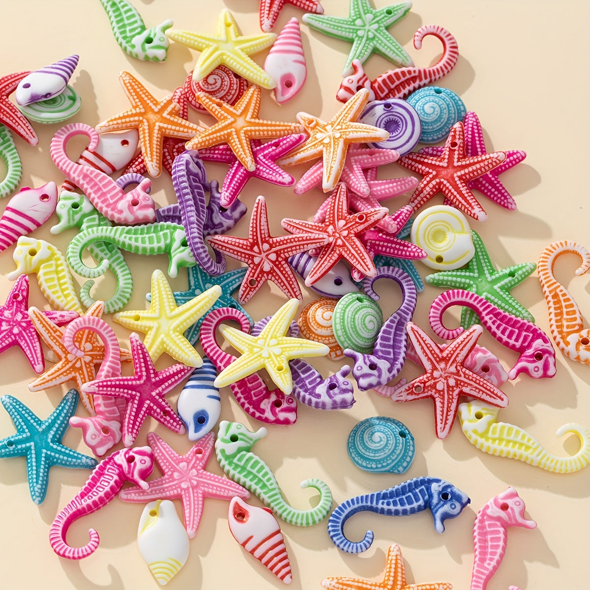 Colorful Ocean Star Shell Seahorse Acrylic Beads 30g 50pcs