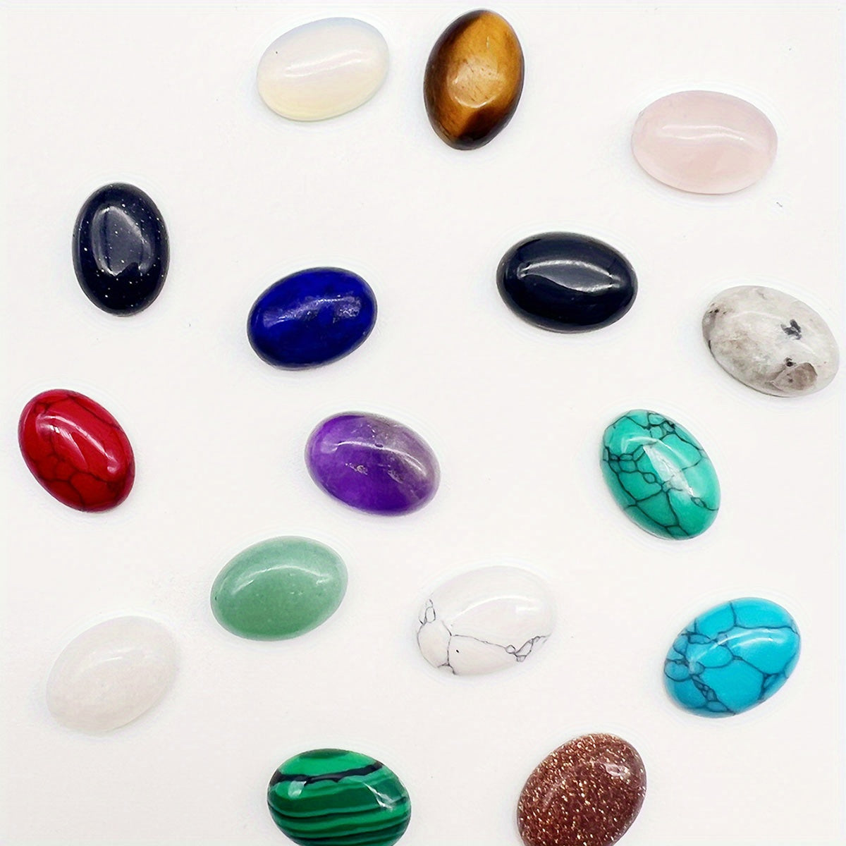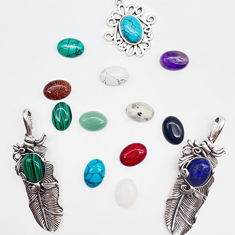 Enhance your jewelry making projects with this set of 16 colorful oval natural stone beads. Perfect for creating unique pendants and accessories.