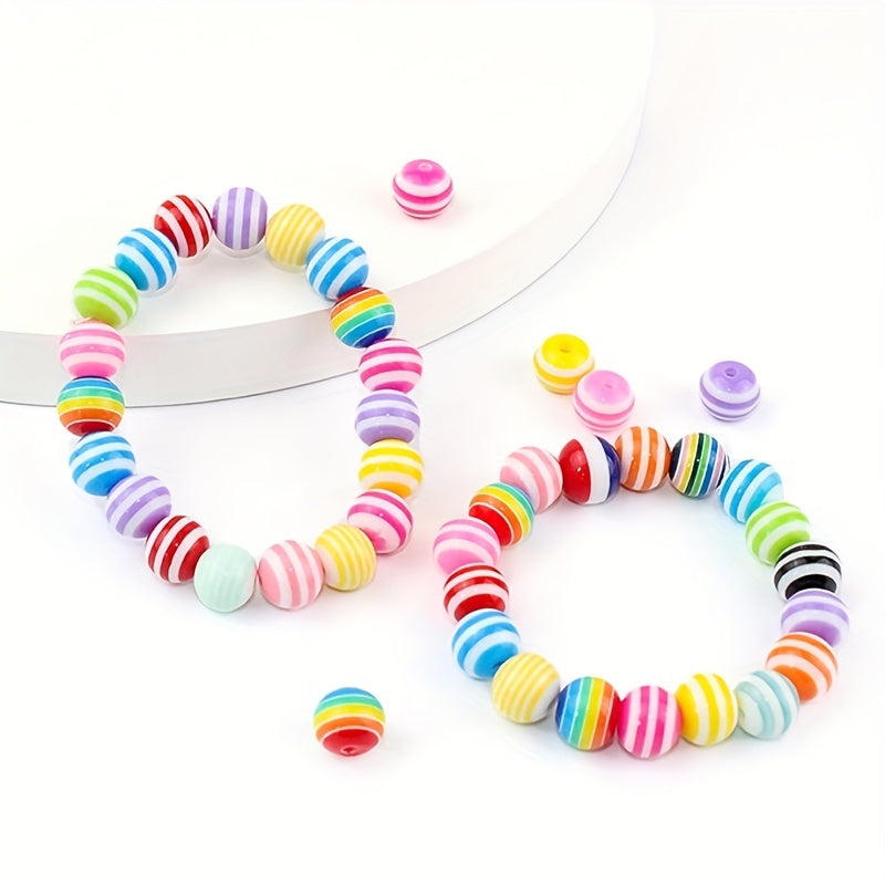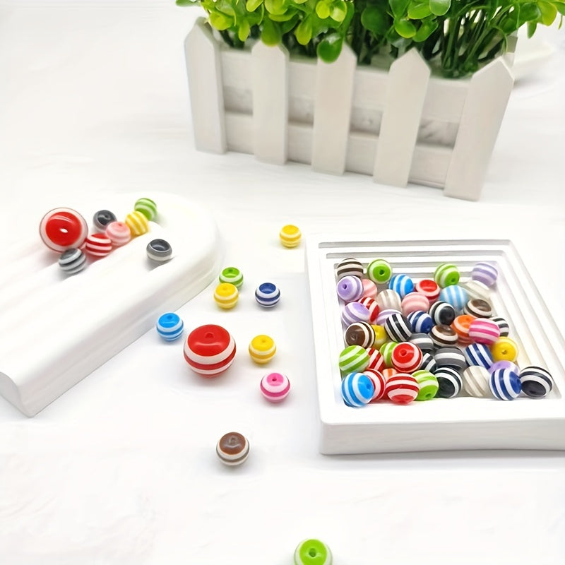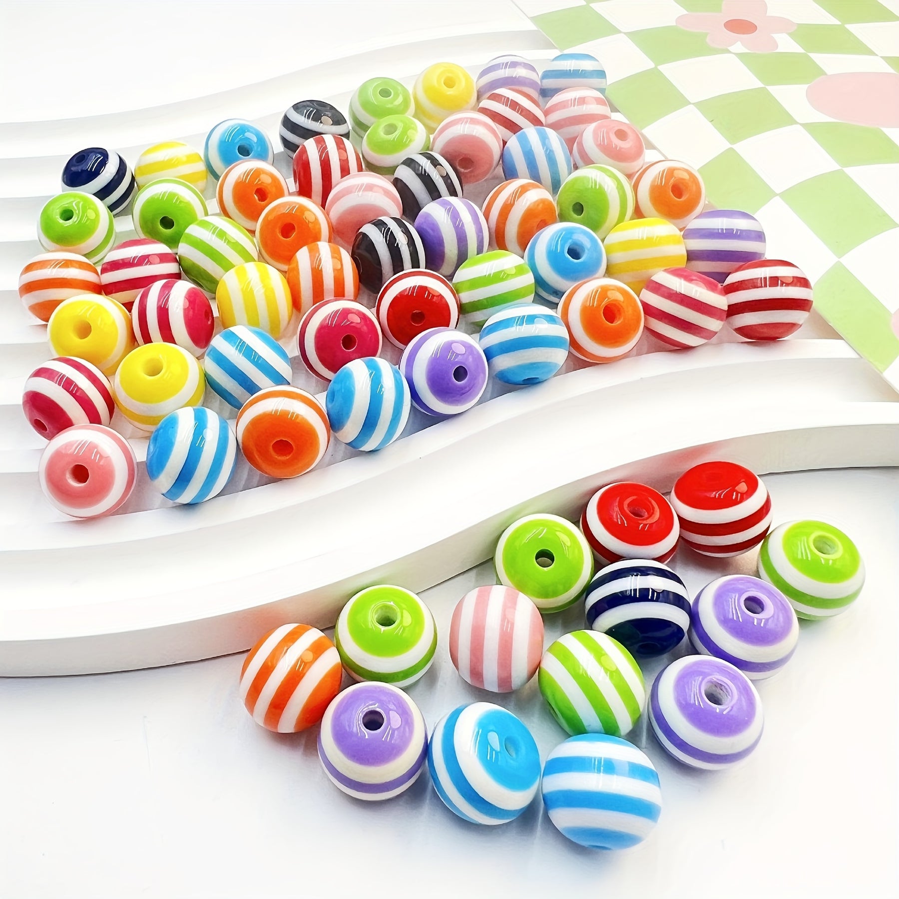 Colorful Resin Striped Round Beads for DIY Jewelry Making