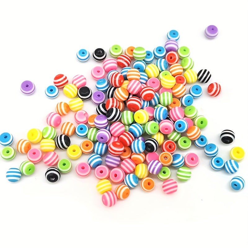 Get 100-200pcs of vibrant 0.58cm-0.99cm resin striped round beads for crafting stunning DIY jewelry. Each bead is in rainbow colors, perfect for creative projects.