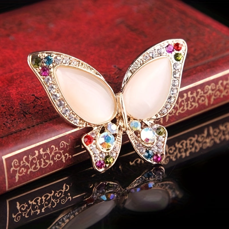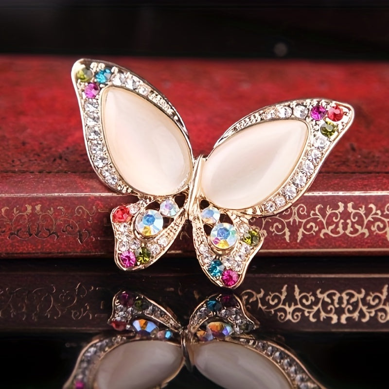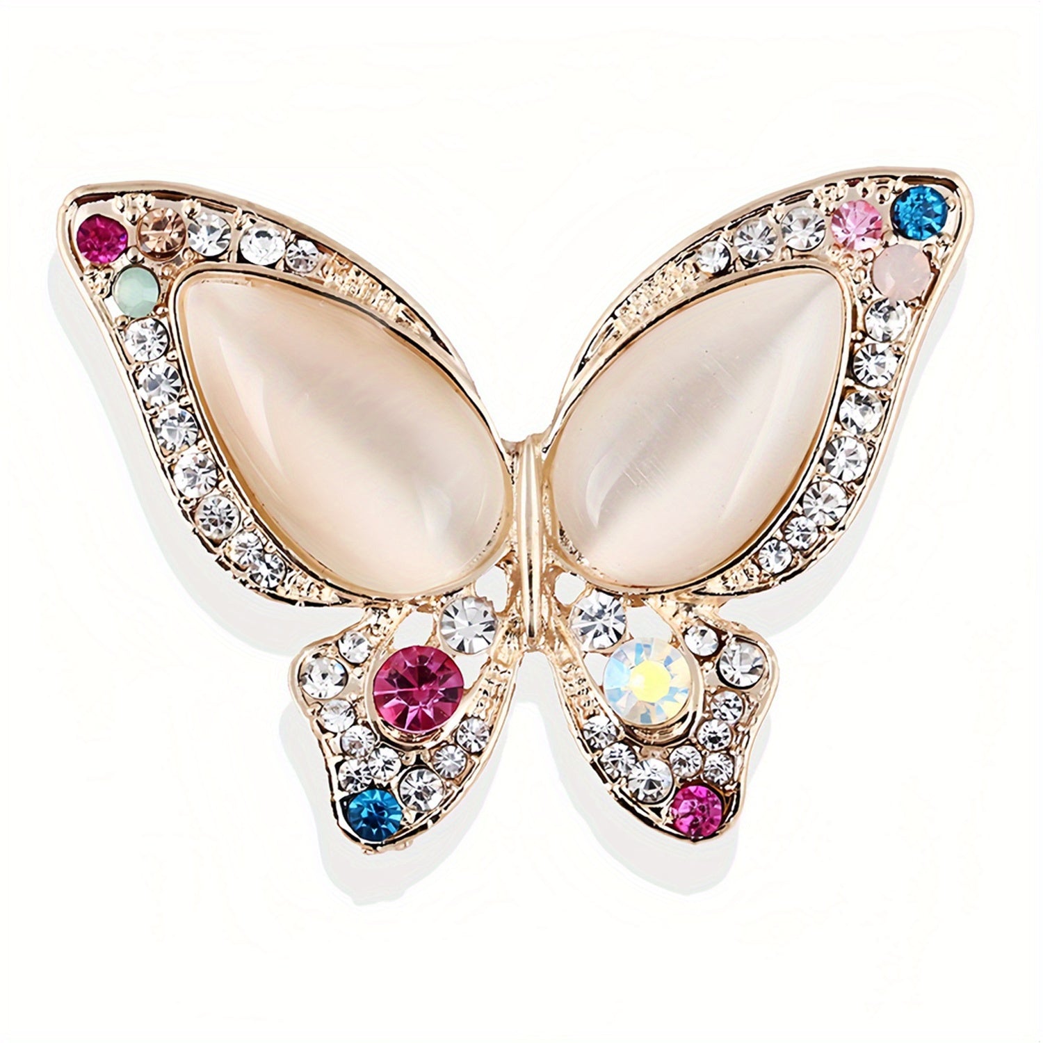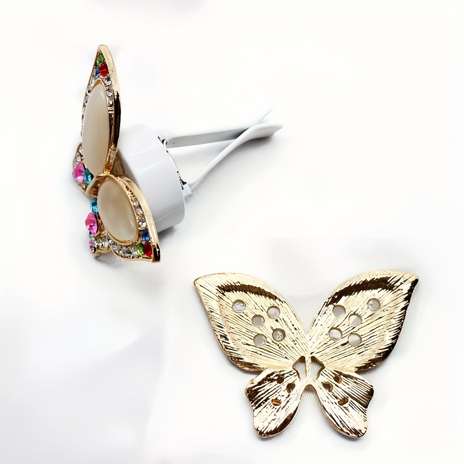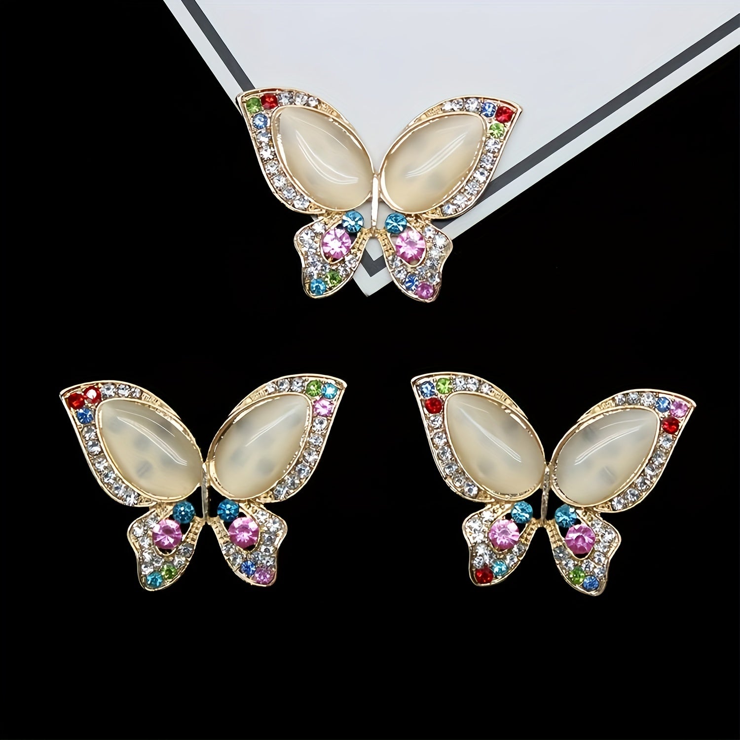 Add a touch of elegance to your DIY jewelry projects with this colorful butterfly charm featuring rhinestones and cat eye stones. Perfect for creating unique pins and brooches.
