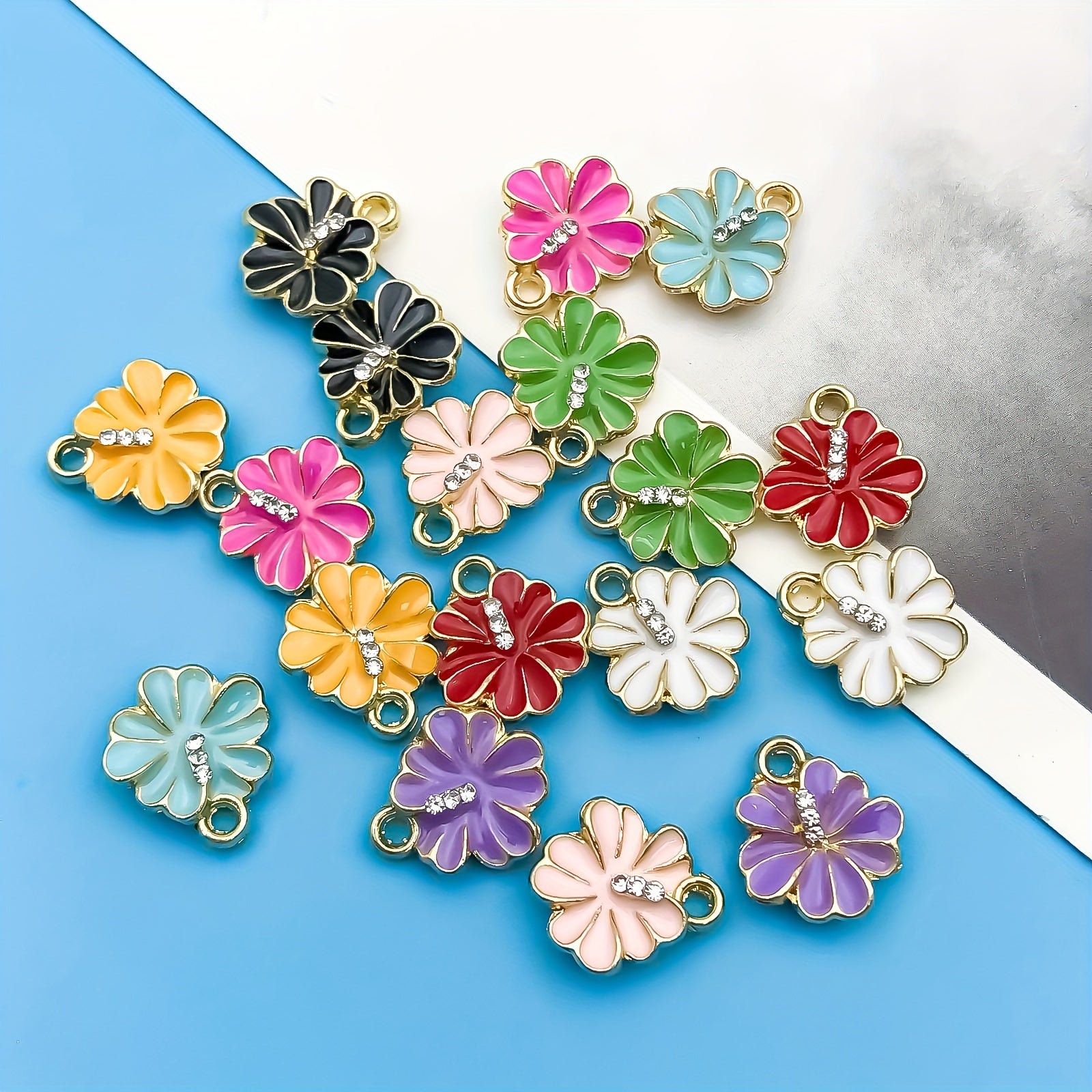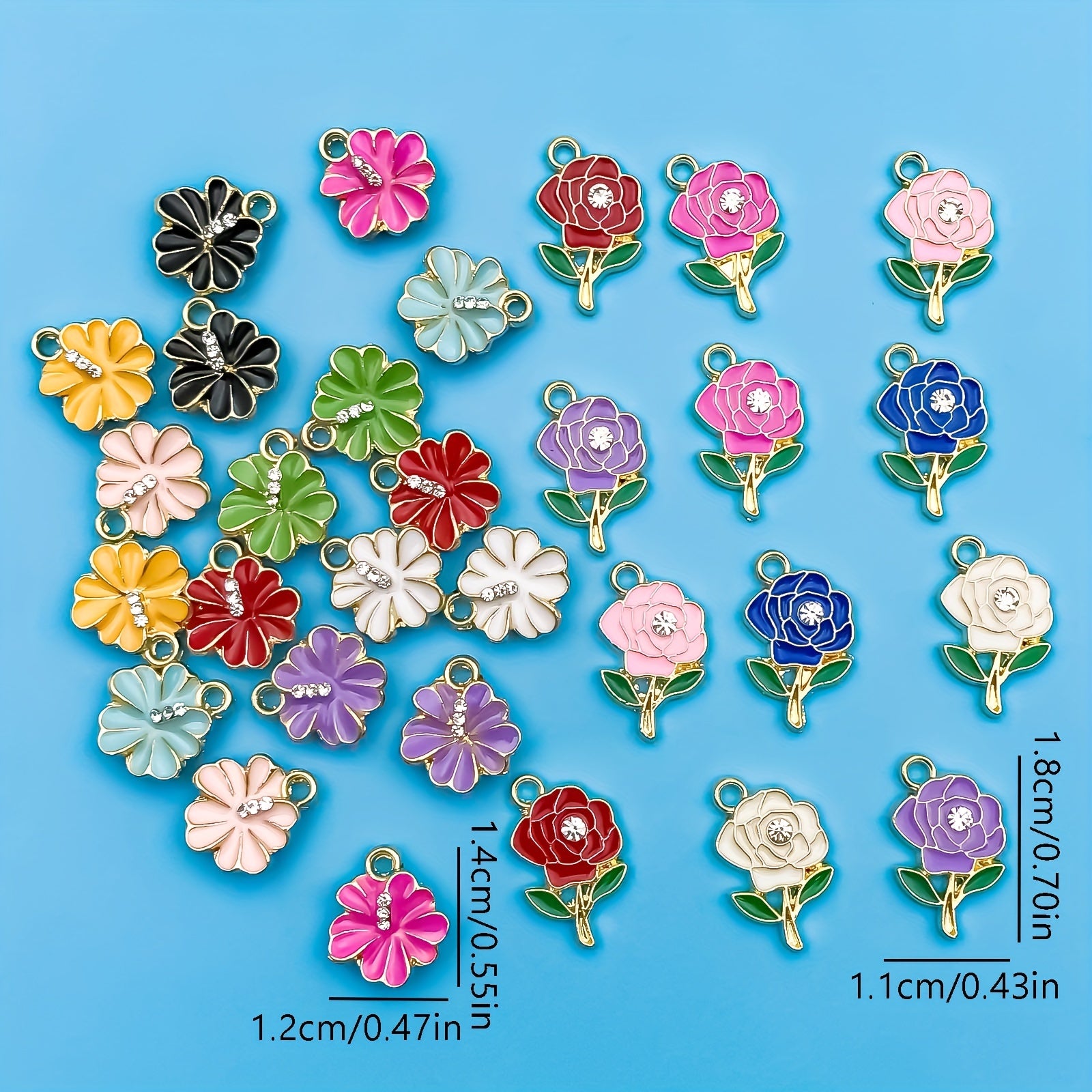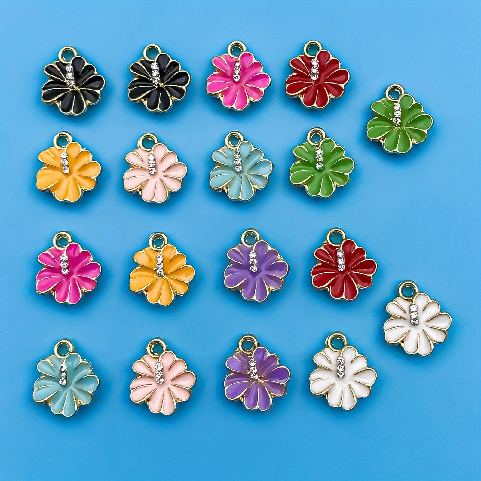 Add a touch of sparkle to your handmade jewelry with these vibrant enamel flower pendants. Perfect for creating earrings, bracelets, necklaces, and more.