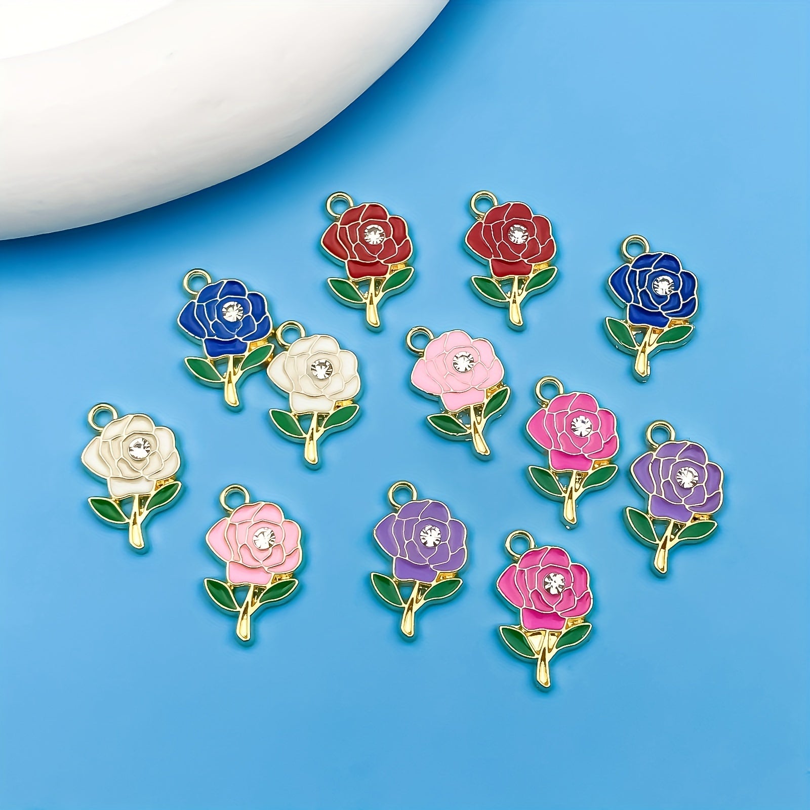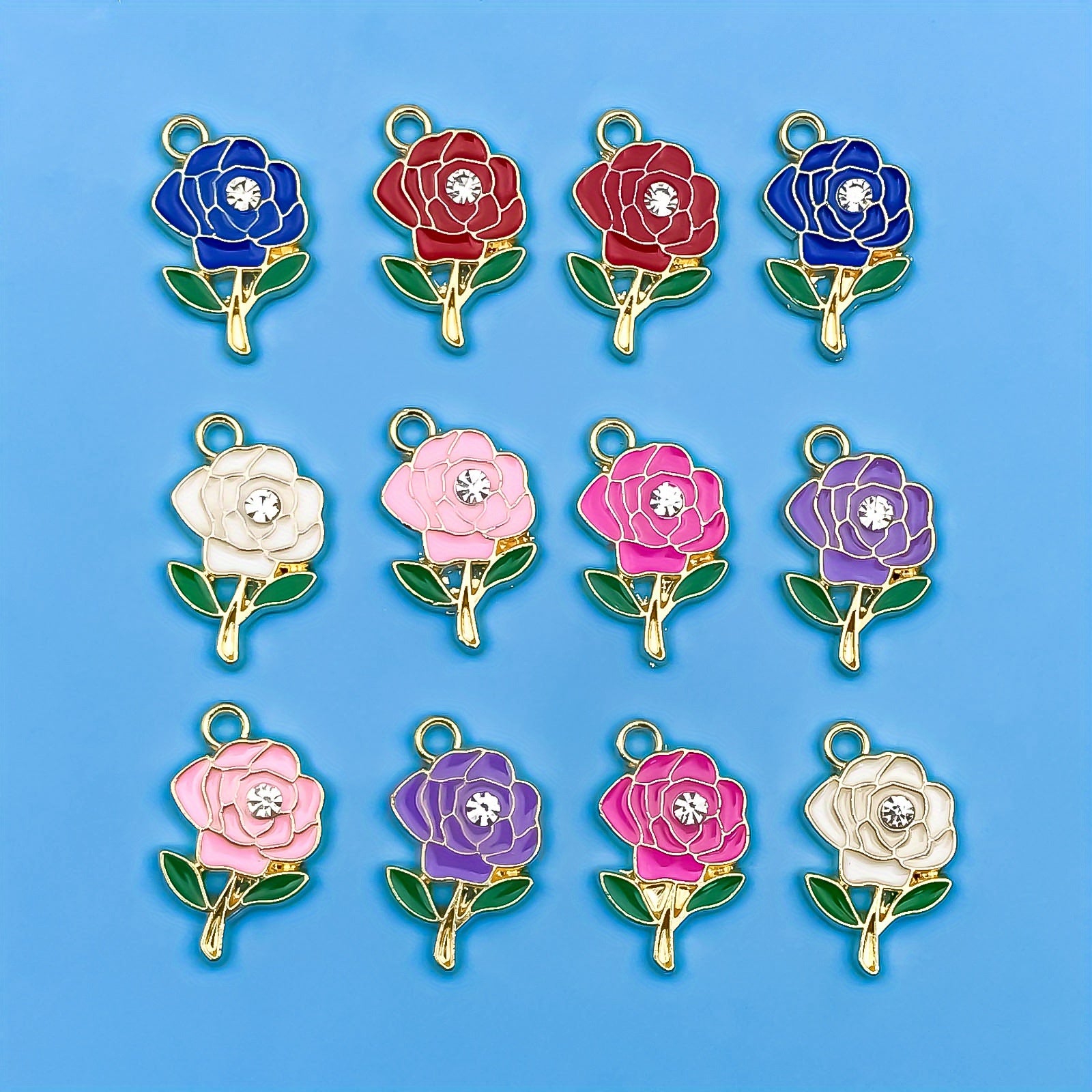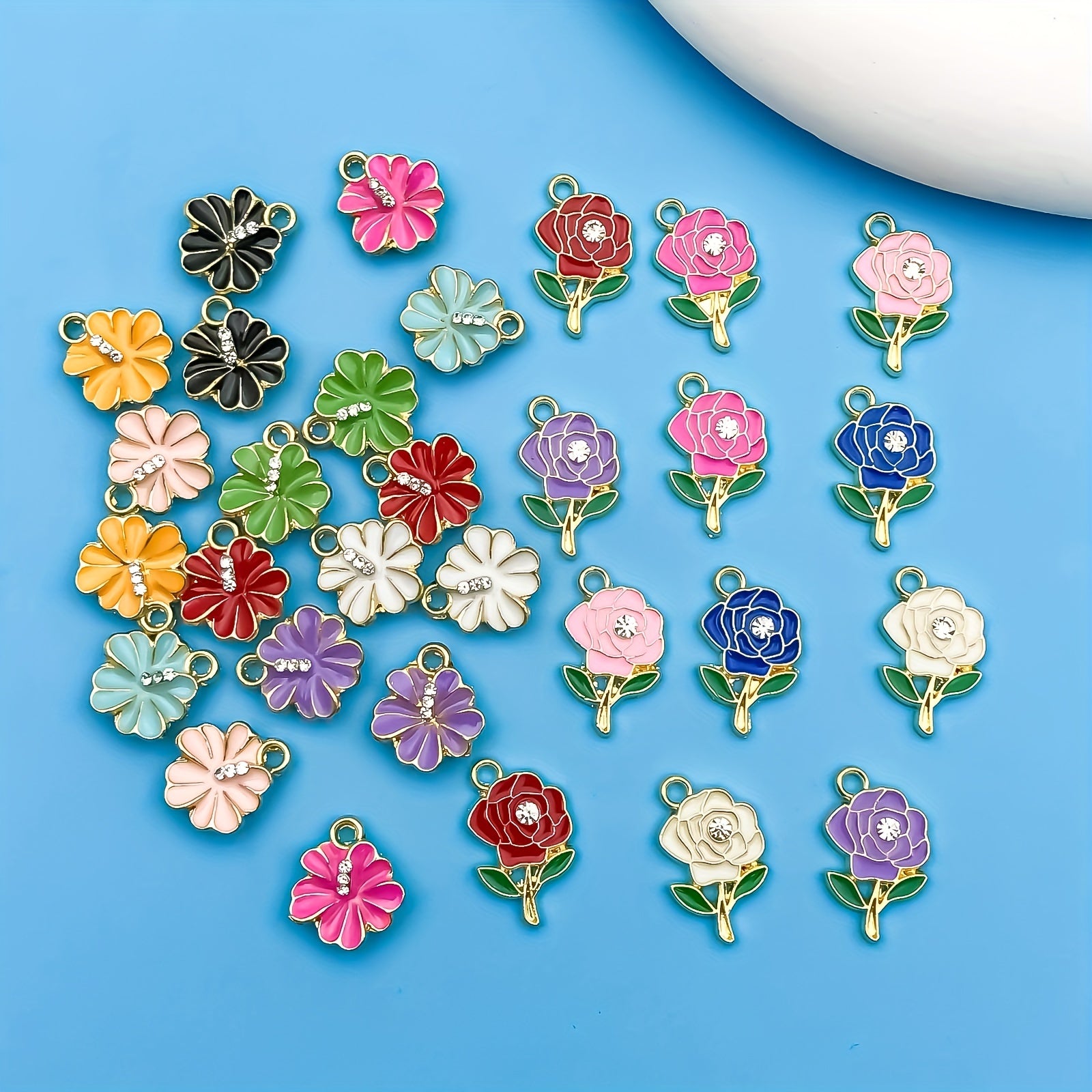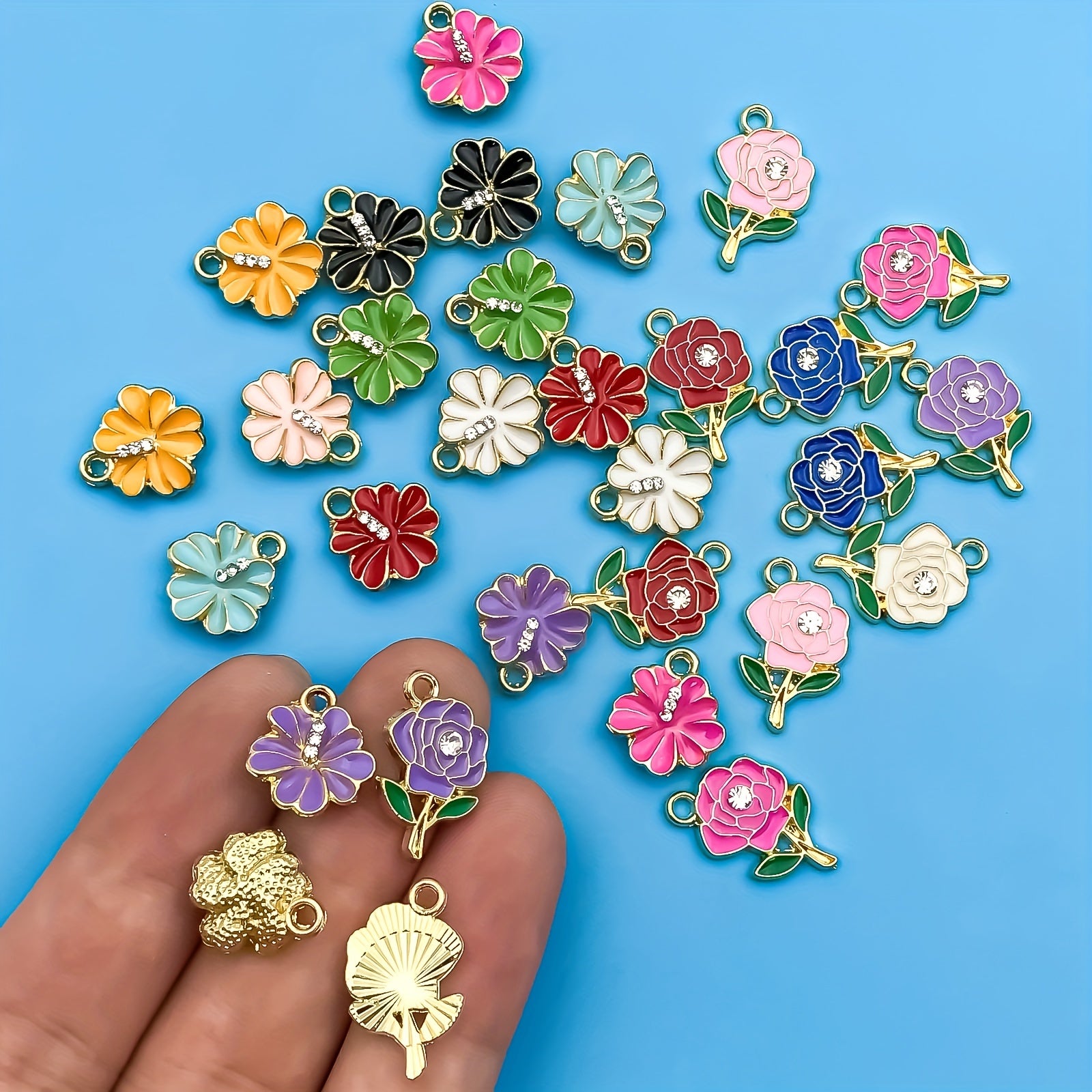 Add a touch of sparkle to your handmade jewelry with these vibrant enamel flower pendants. Perfect for creating earrings, bracelets, necklaces, and more.