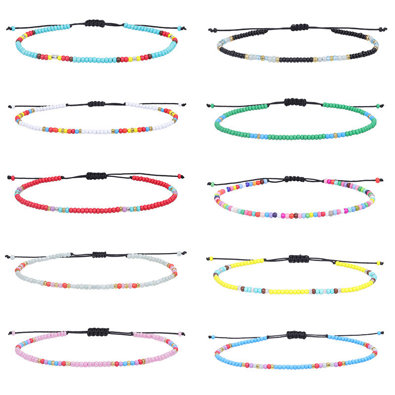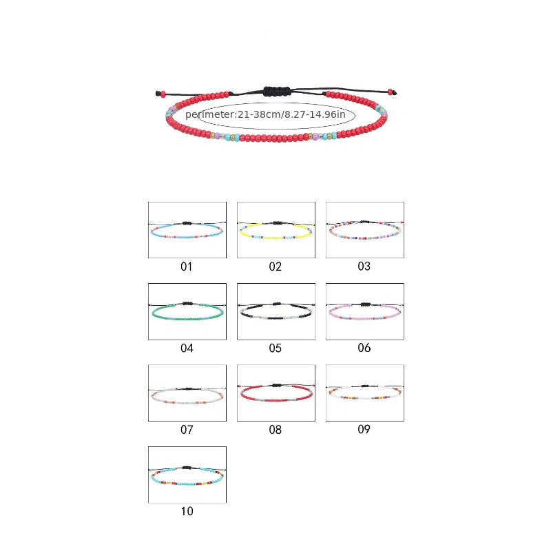 Add a pop of color to your beach outfit with this vibrant rice beads braided anklet. Perfect for a fun day at the seaside or surfing.