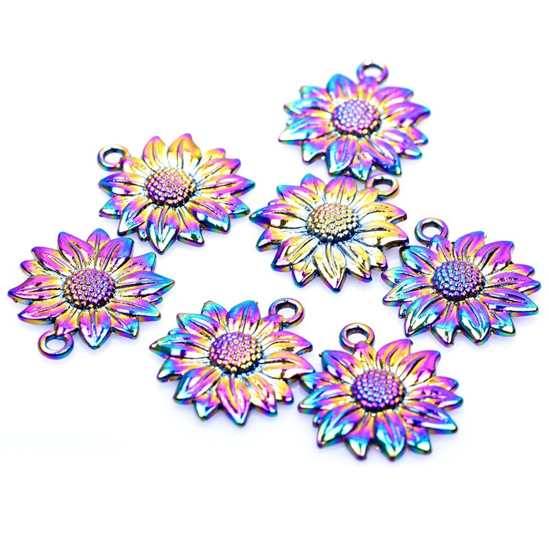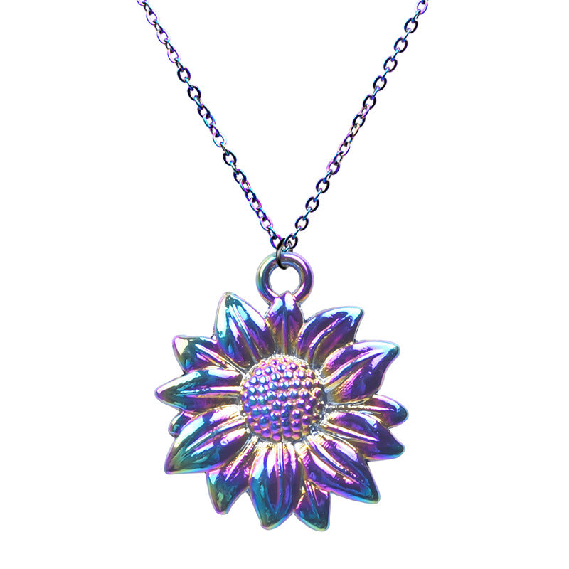 This pendant necklace features a colorful sunflower design, perfect for adding a pop of color to any outfit.