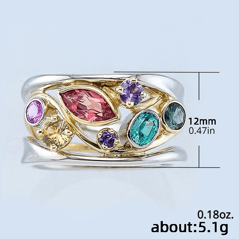 Elevate your daily outfits with this stunning silver plated ring featuring colorful zircon inlays. Perfect for adding a touch of boho flair to your look. Ideal for both casual wear and special occasions.