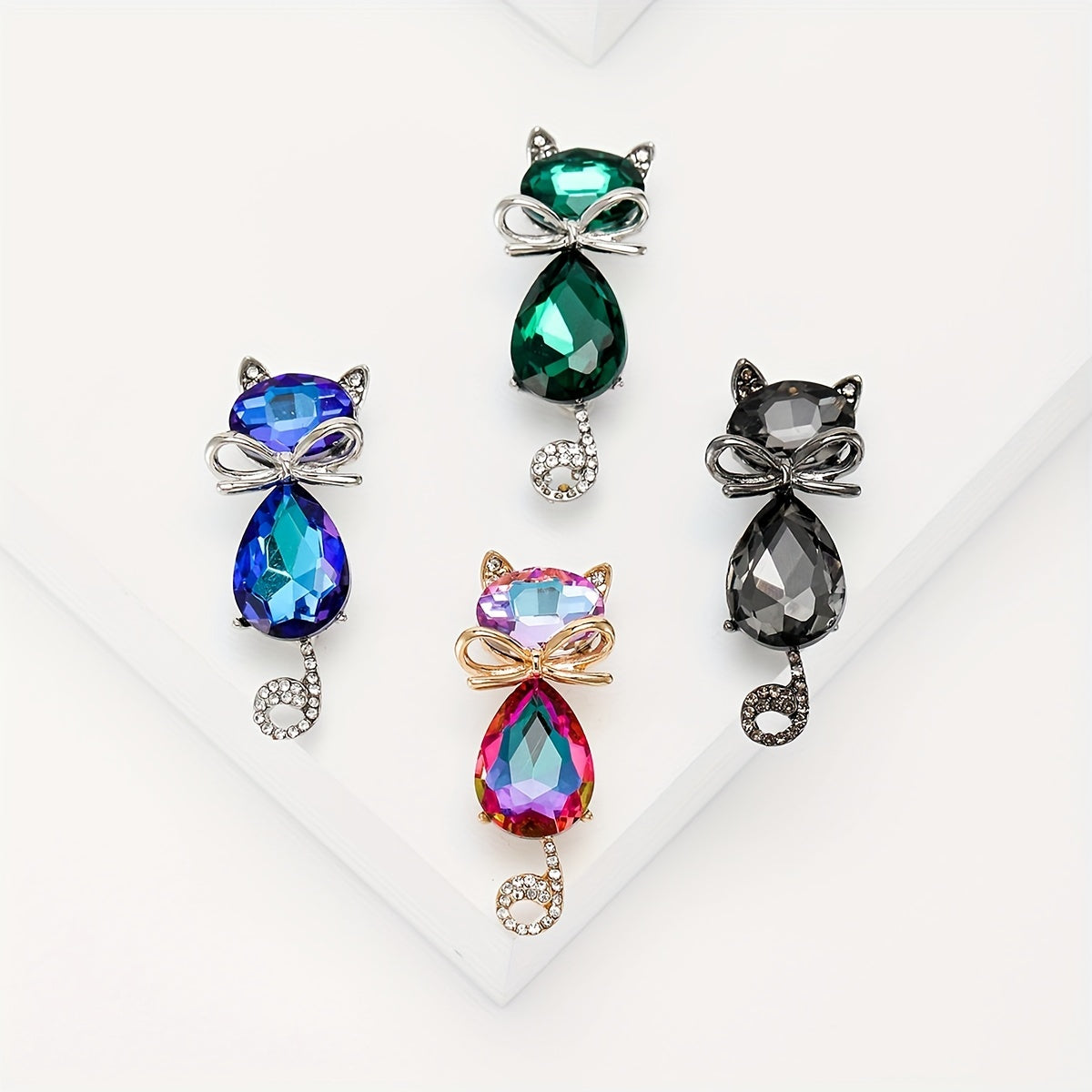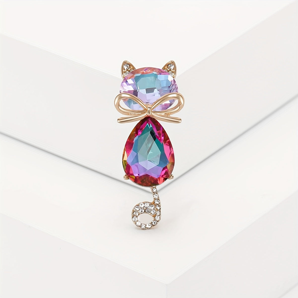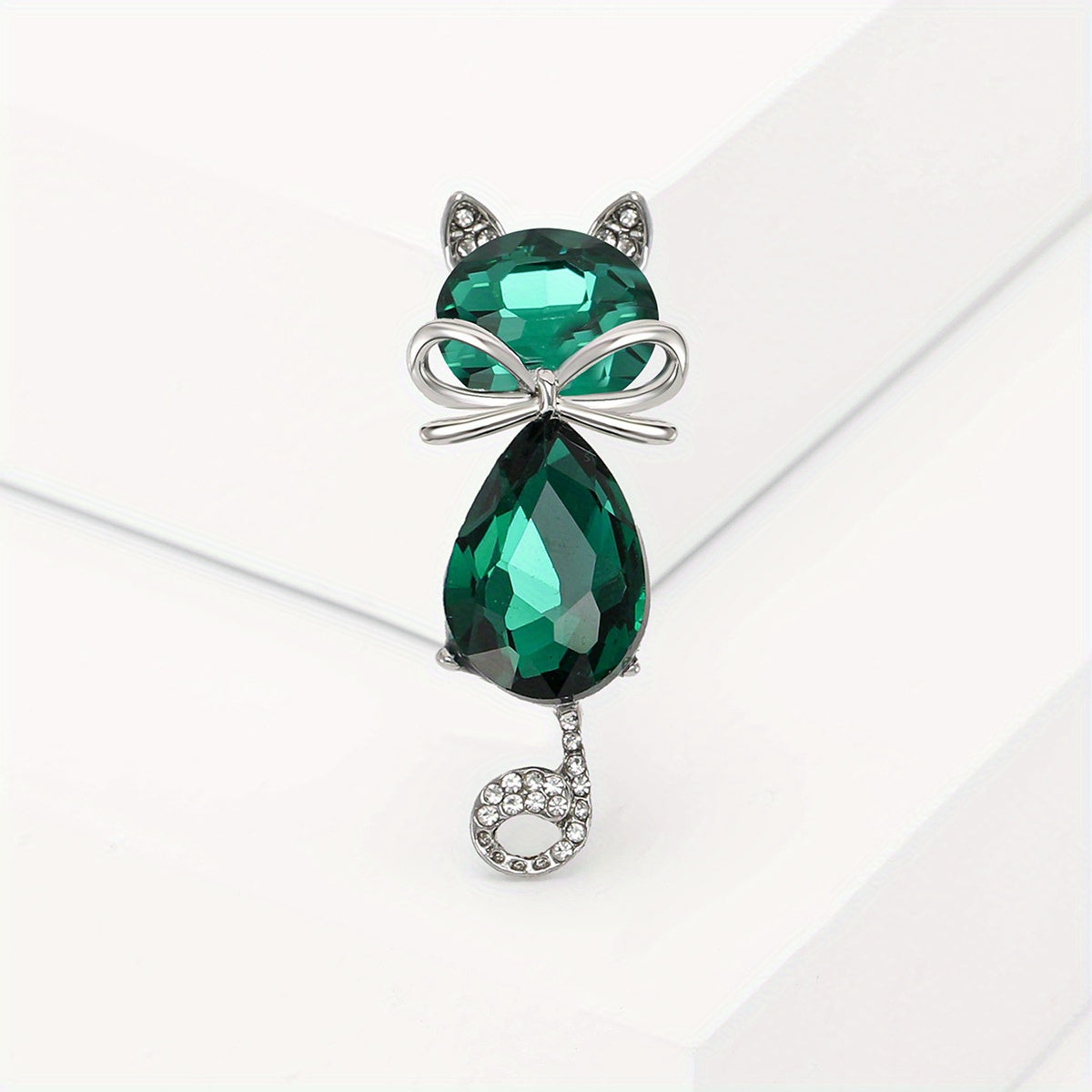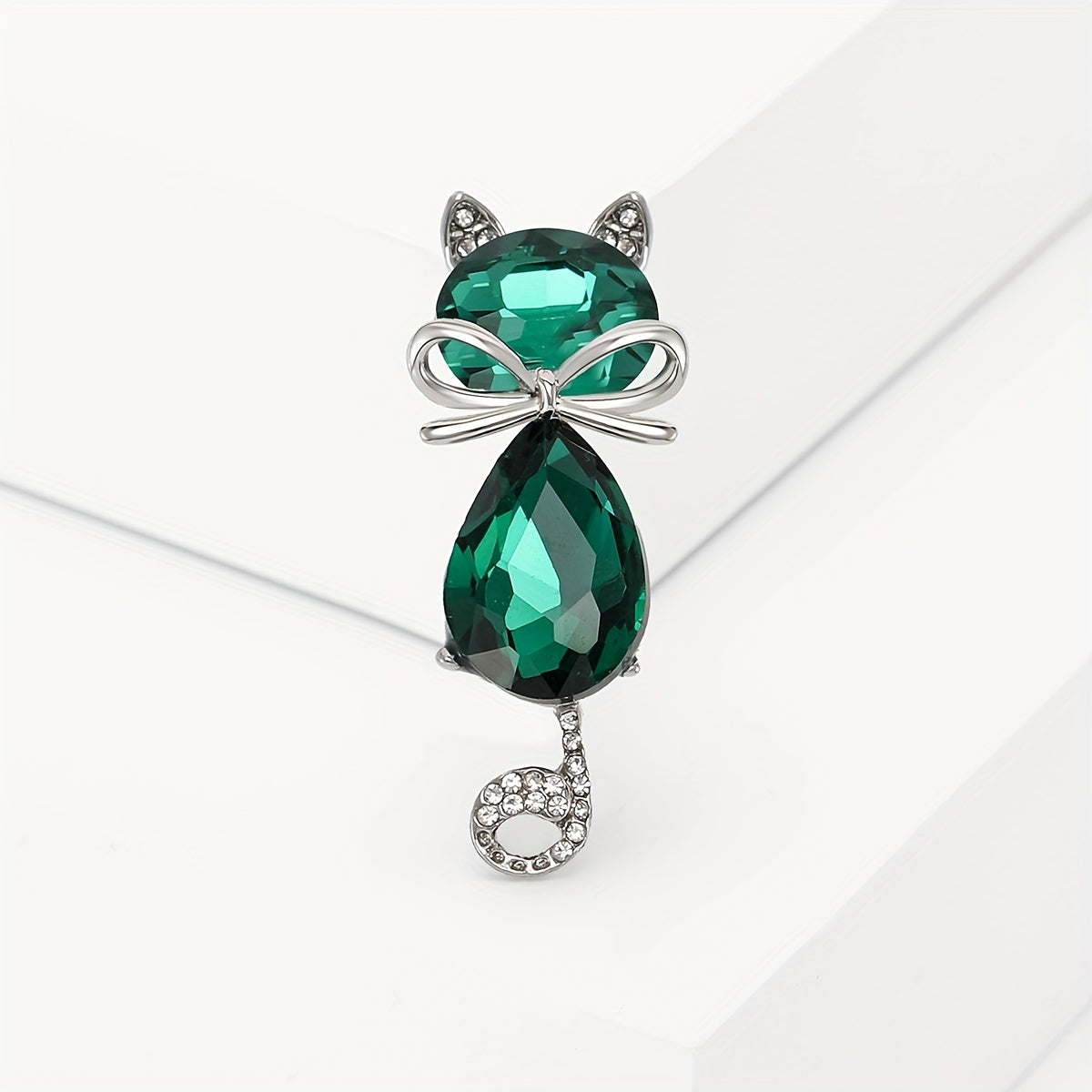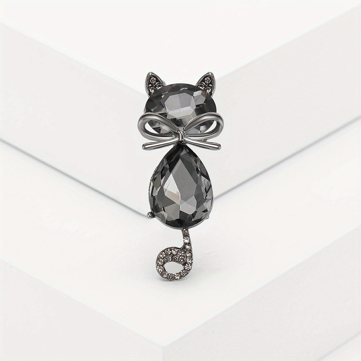 Add a touch of feline charm to your outfit with this elegant crystal cat shape brooch. Perfect for jeans, suits, shirts, and more.