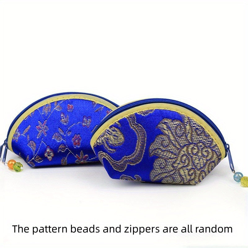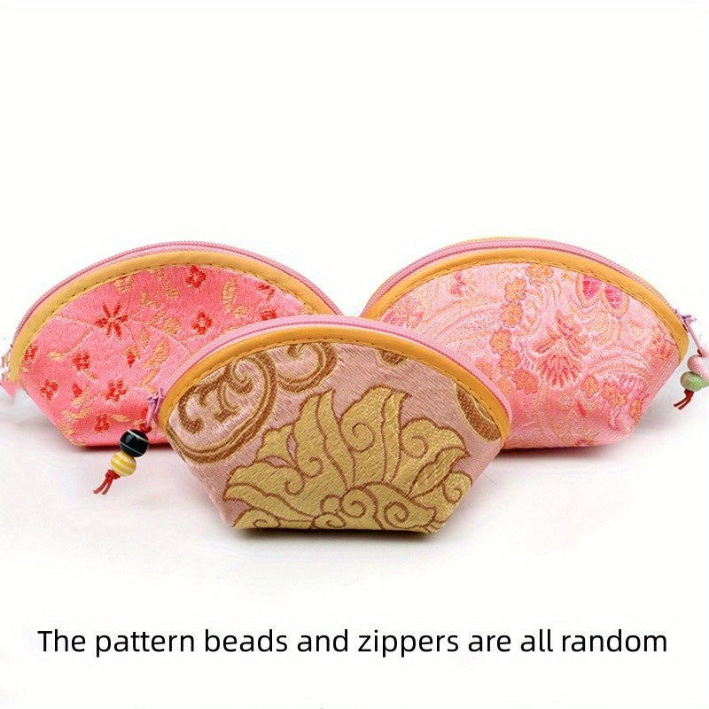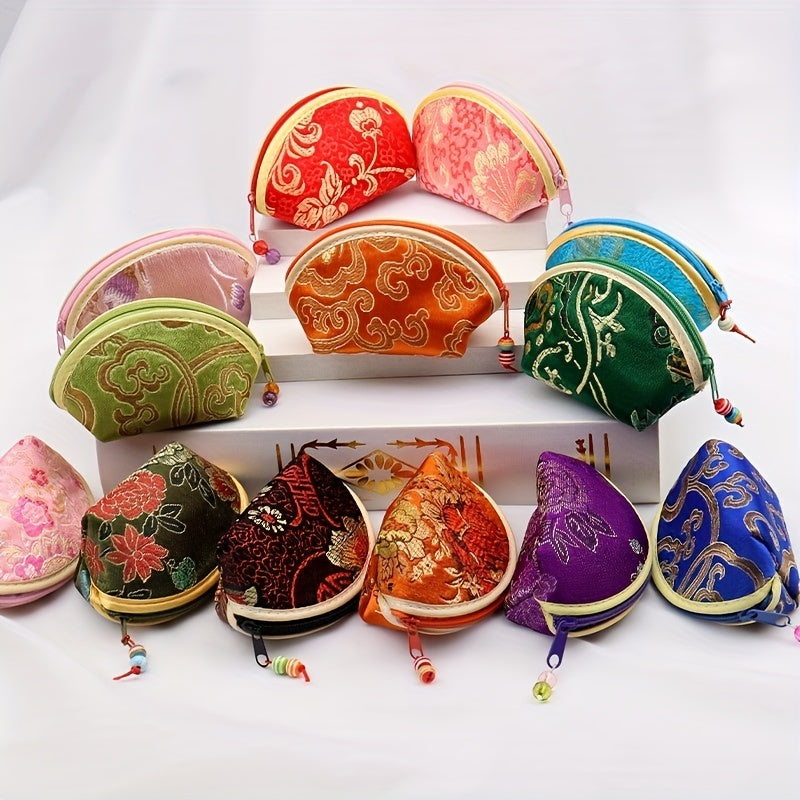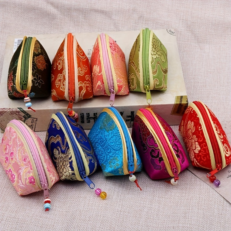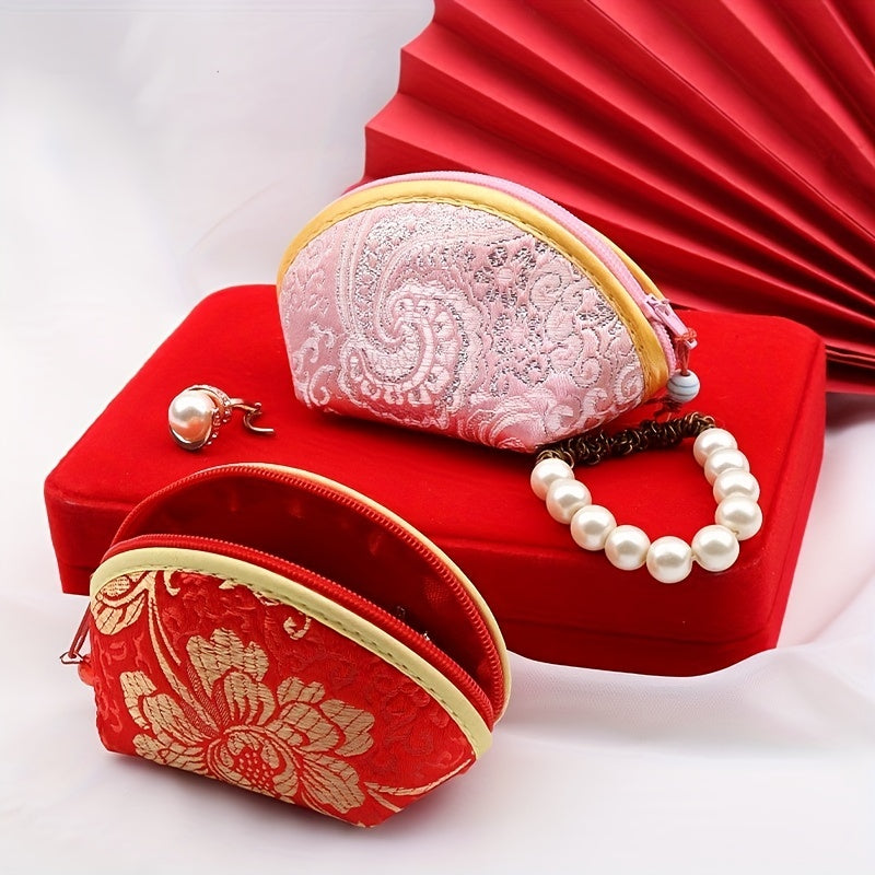 This jewelry storage bag features a unique dumpling shape with a zipper opening. Made from retro brocade, it offers a stylish way to store your favorite jewelry pieces.