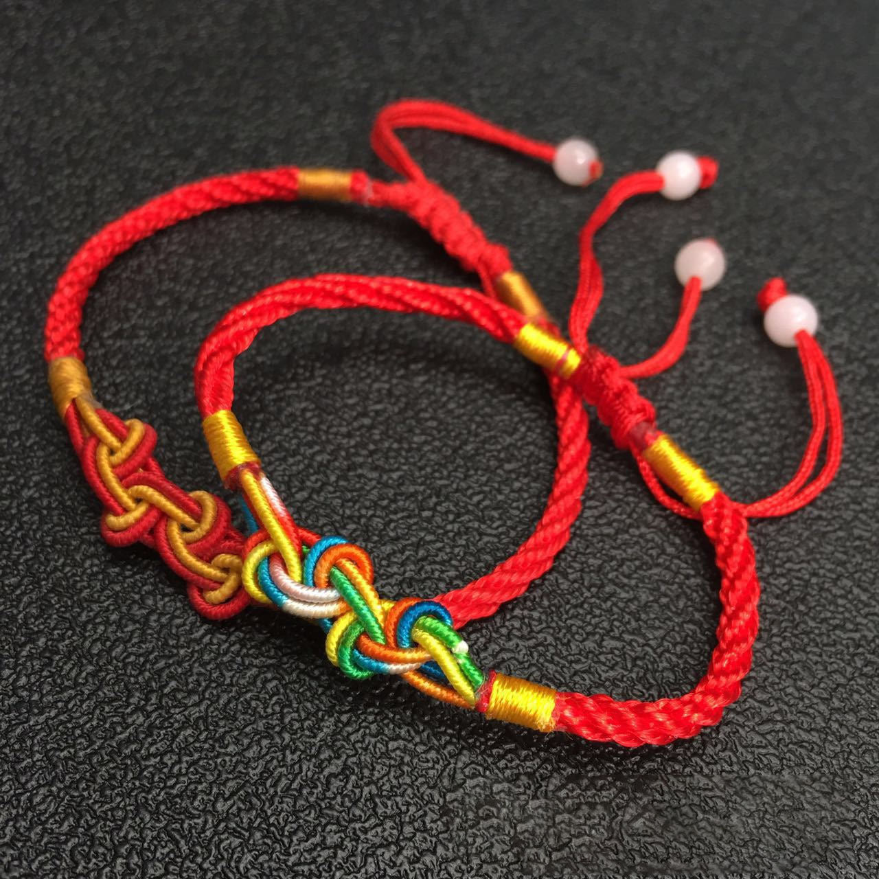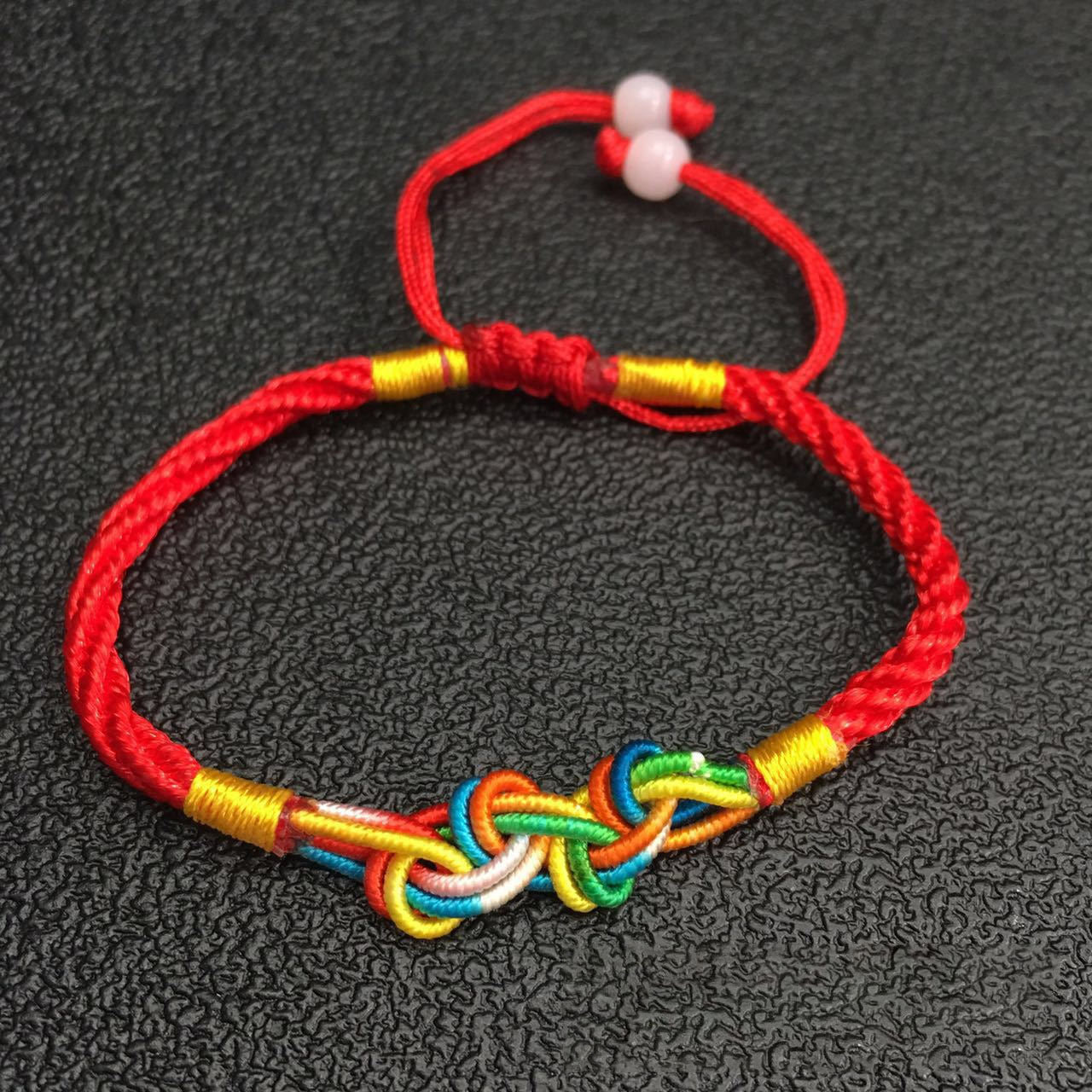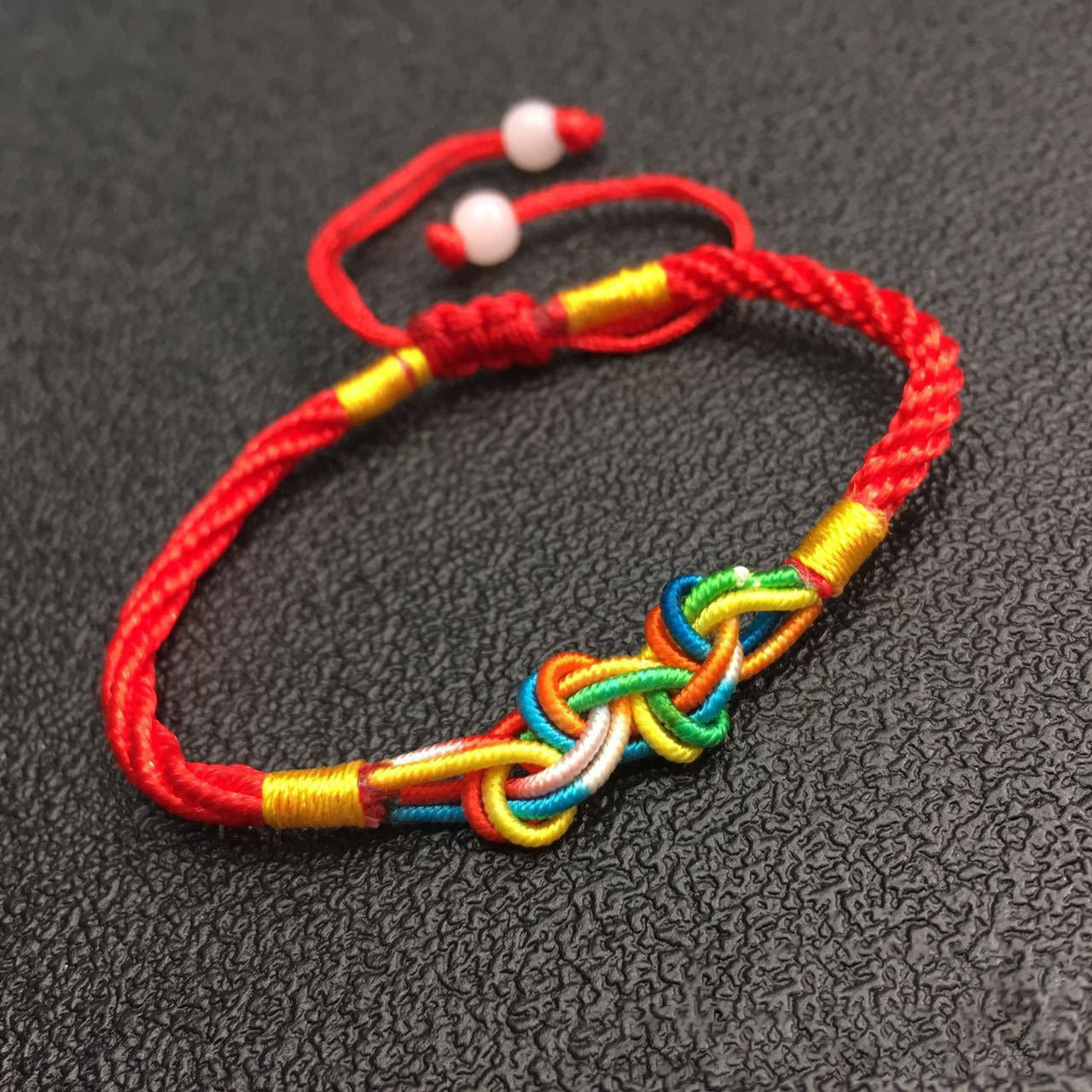 This hand-woven bracelet features a unique ethnic style design with red thread and multicolored ropes. It is an exorcism jewelry piece that adds a touch of culture to your look.