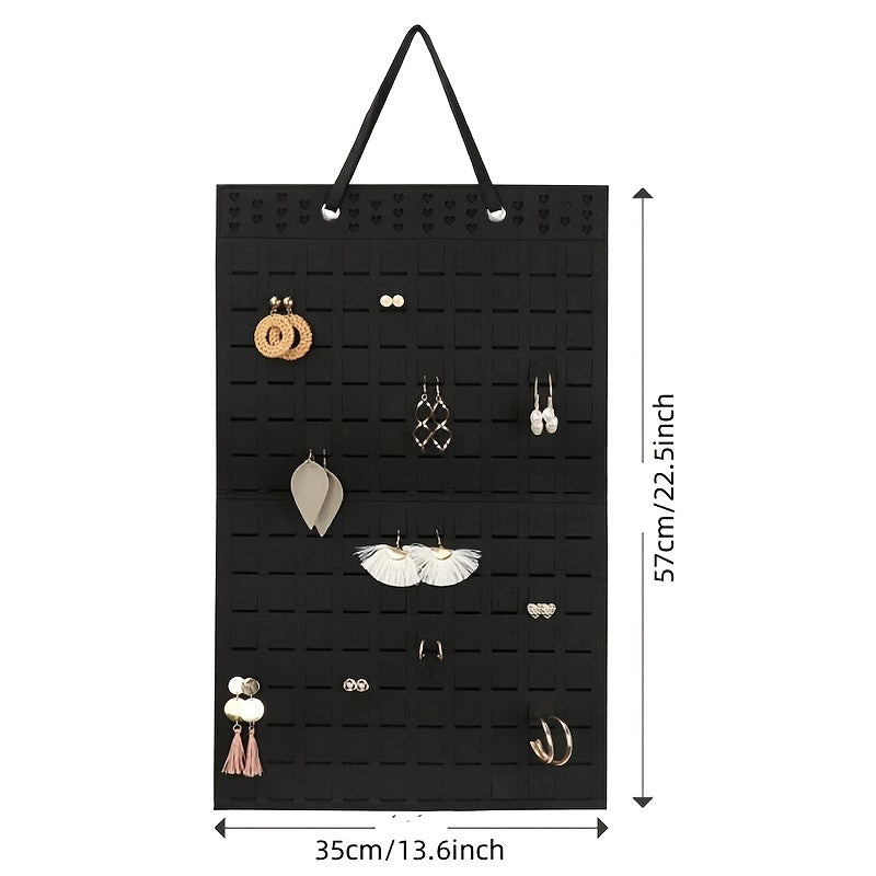 This hanging jewelry storage bag is perfect for organizing and displaying your earrings. Made of high-quality felt material, it is durable and stylish.