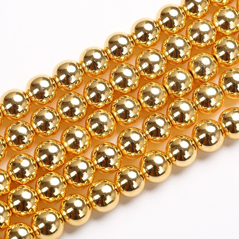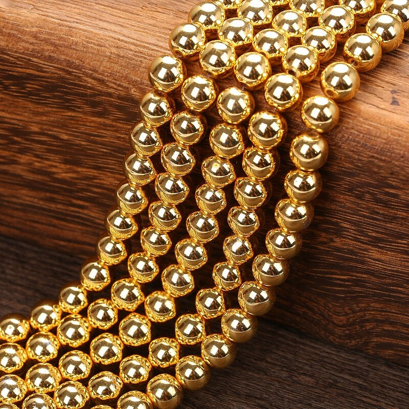 Get these beautiful golden natural stone hematite beads to add a touch of elegance to your DIY jewelry. Available in 4-10mm sizes, perfect for spacer beads.