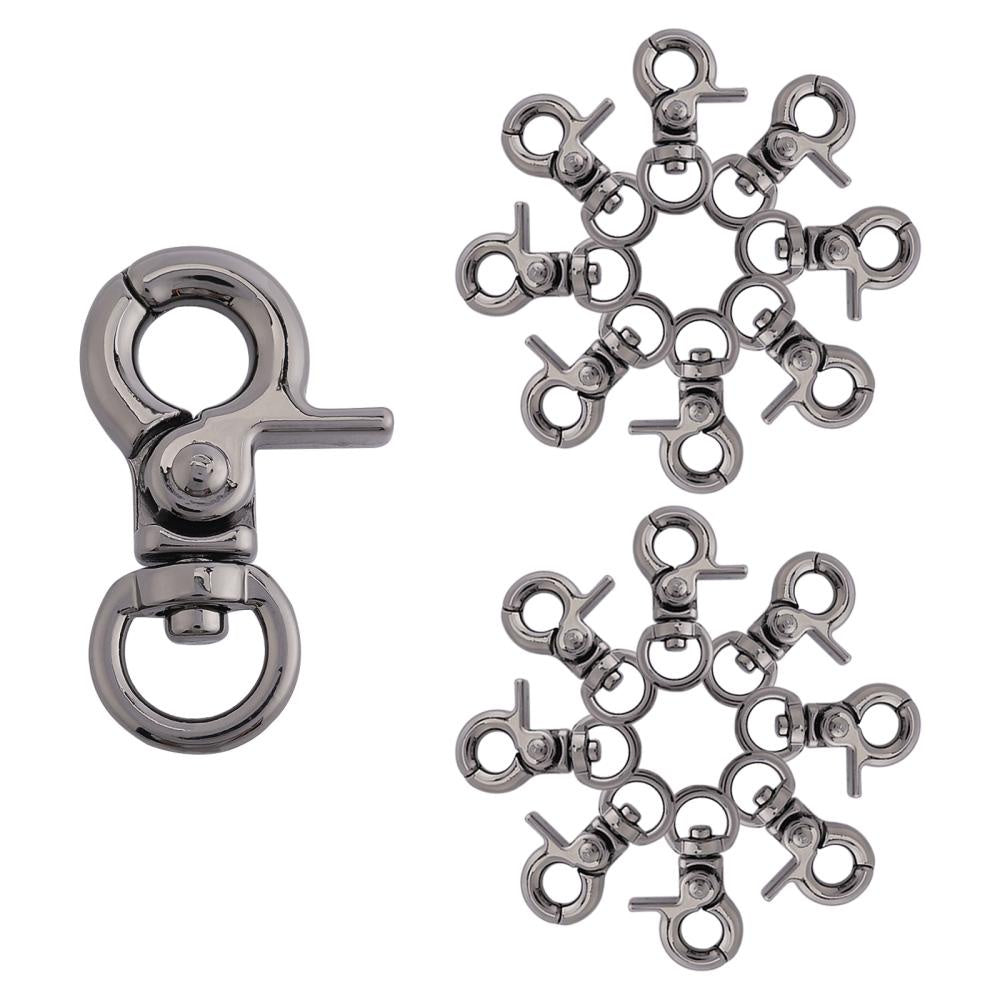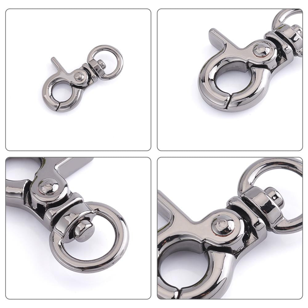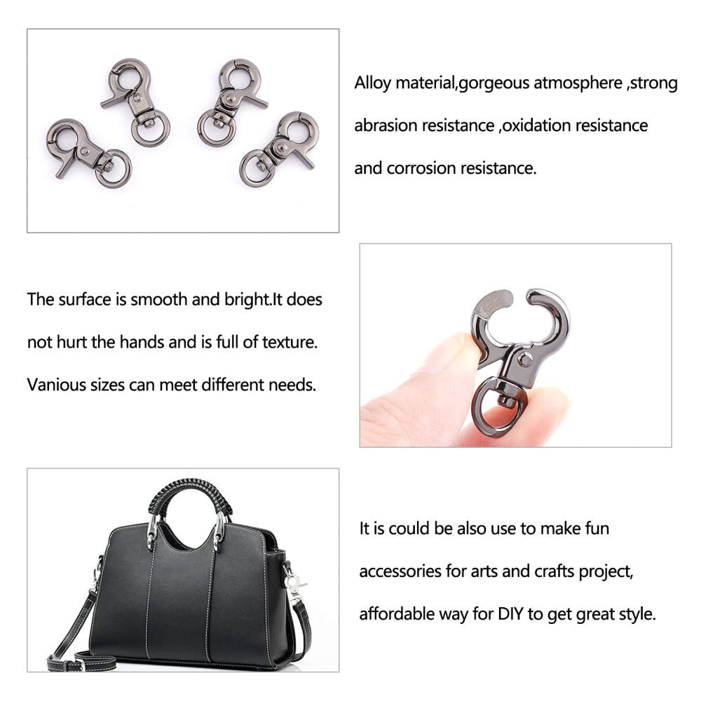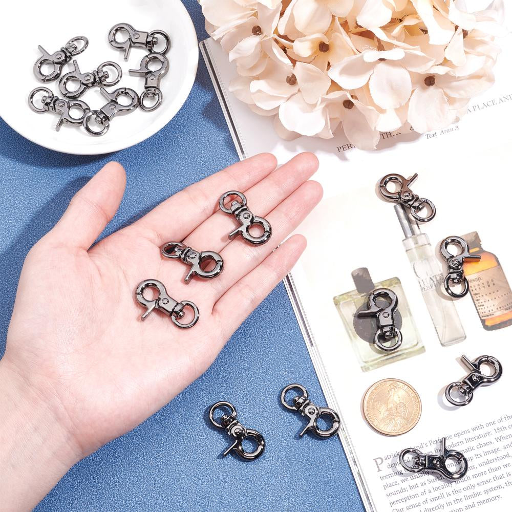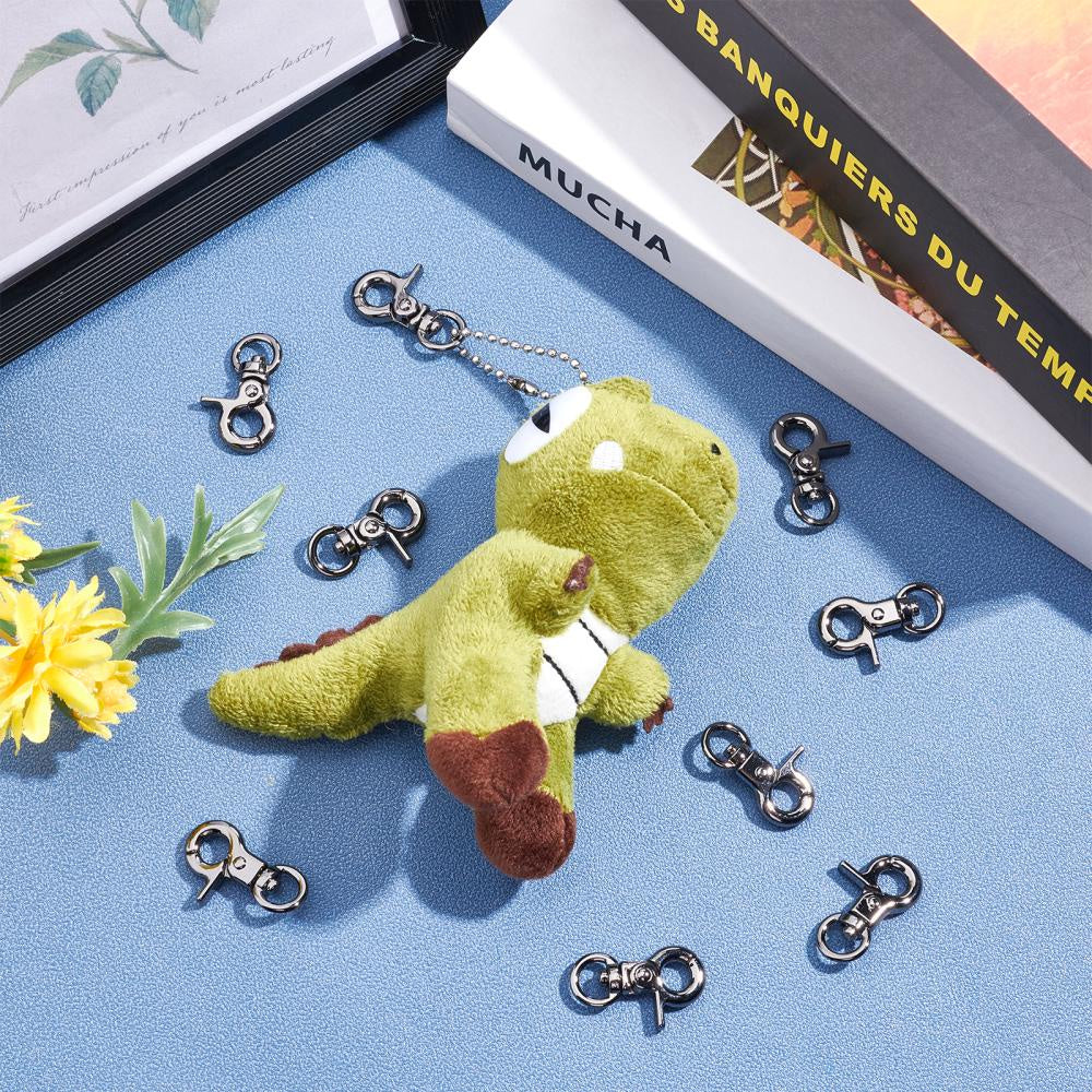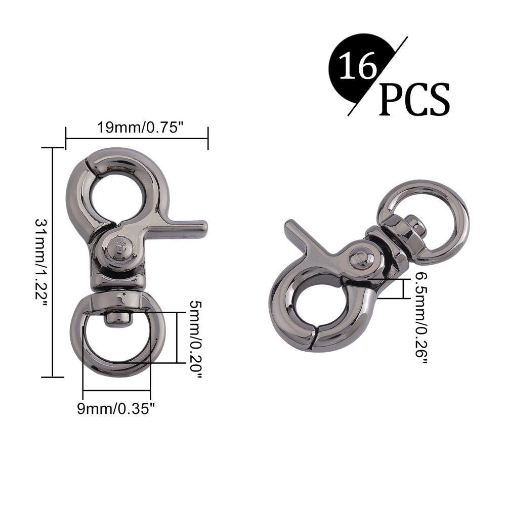 Set of 16 gunmetal zinc alloy swivel lobster claw clasps for DIY keychain key ring crafts. Each clasp measures 31x19x6.5mm with a hole size of 9x5mm.