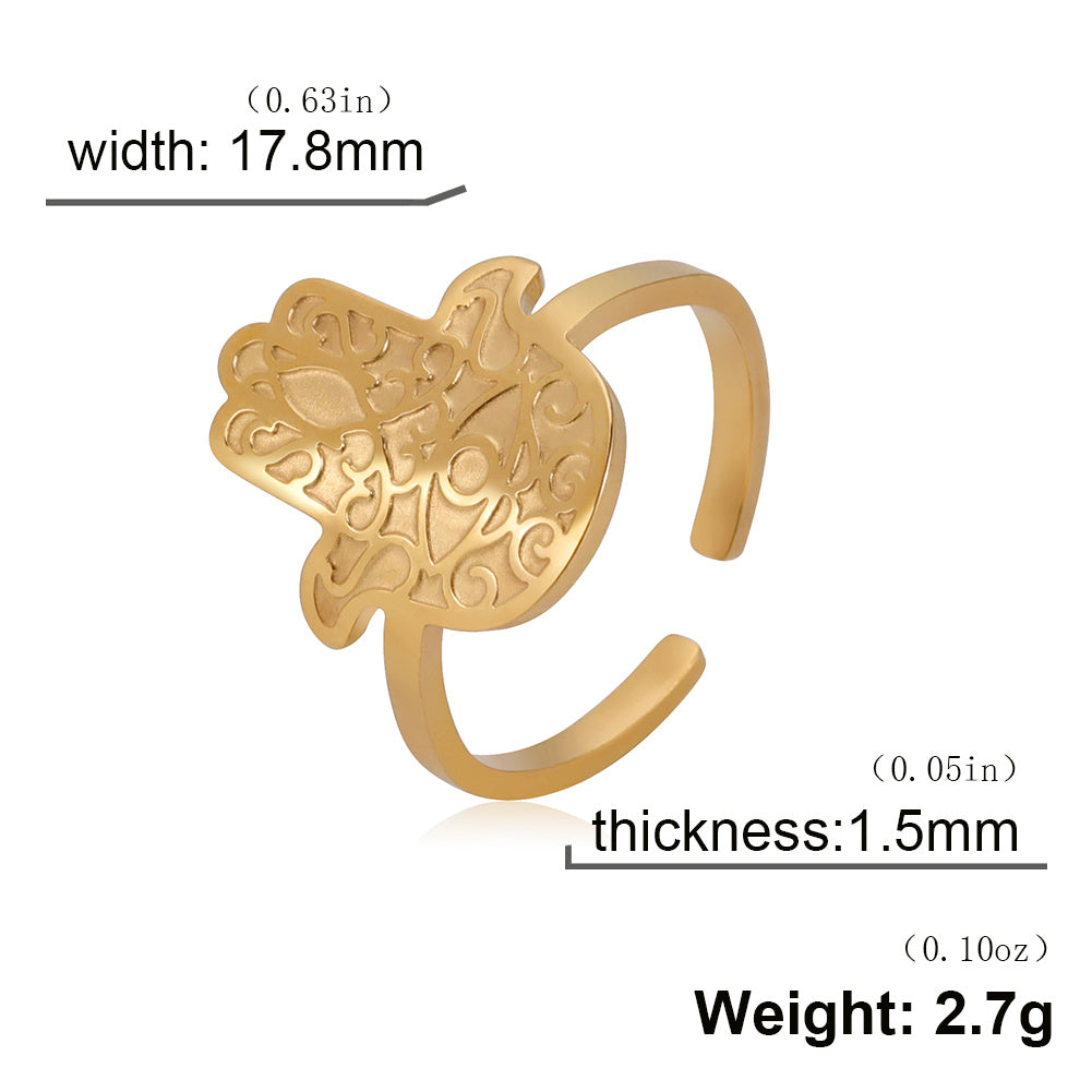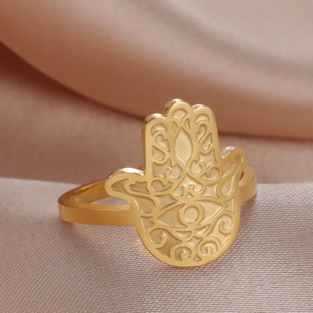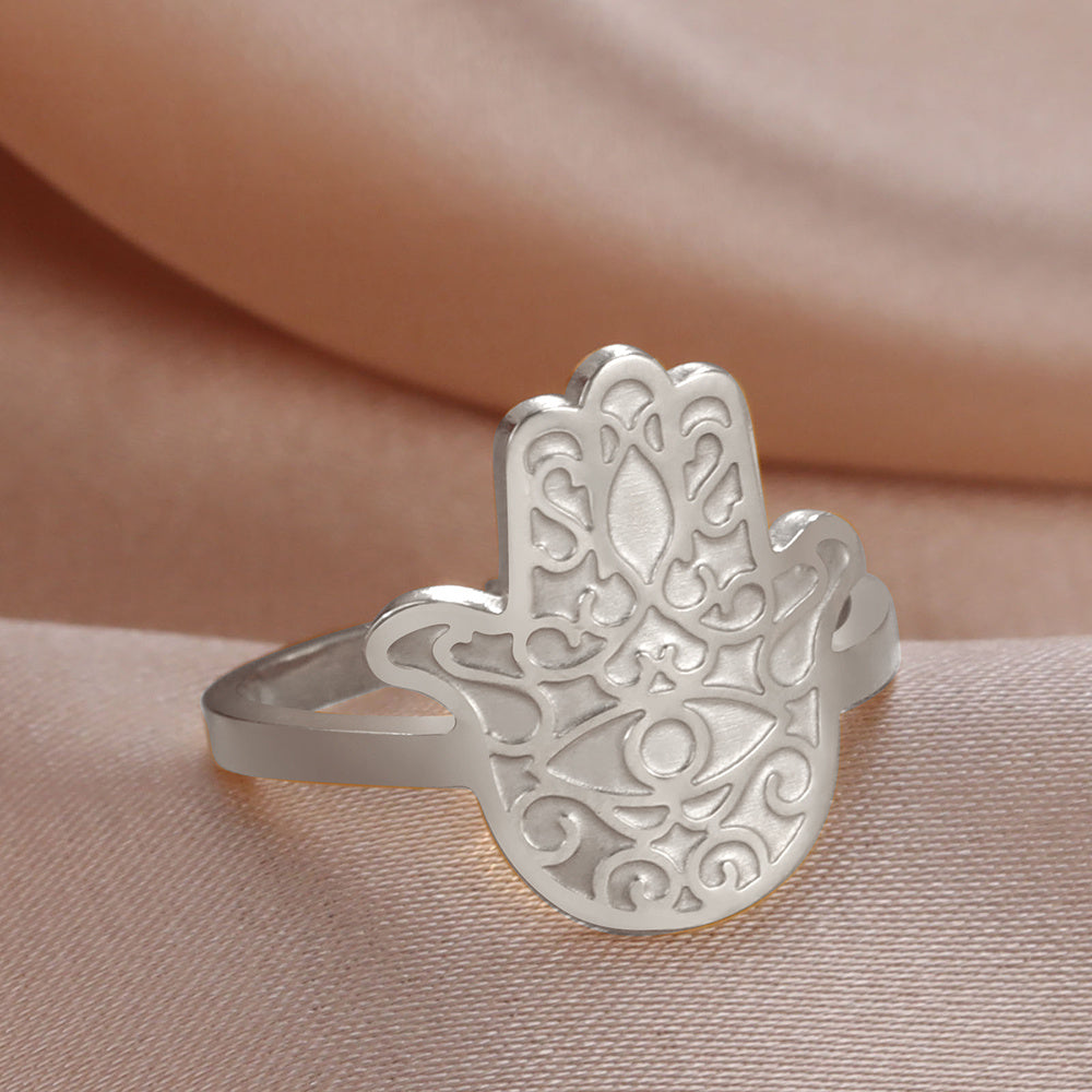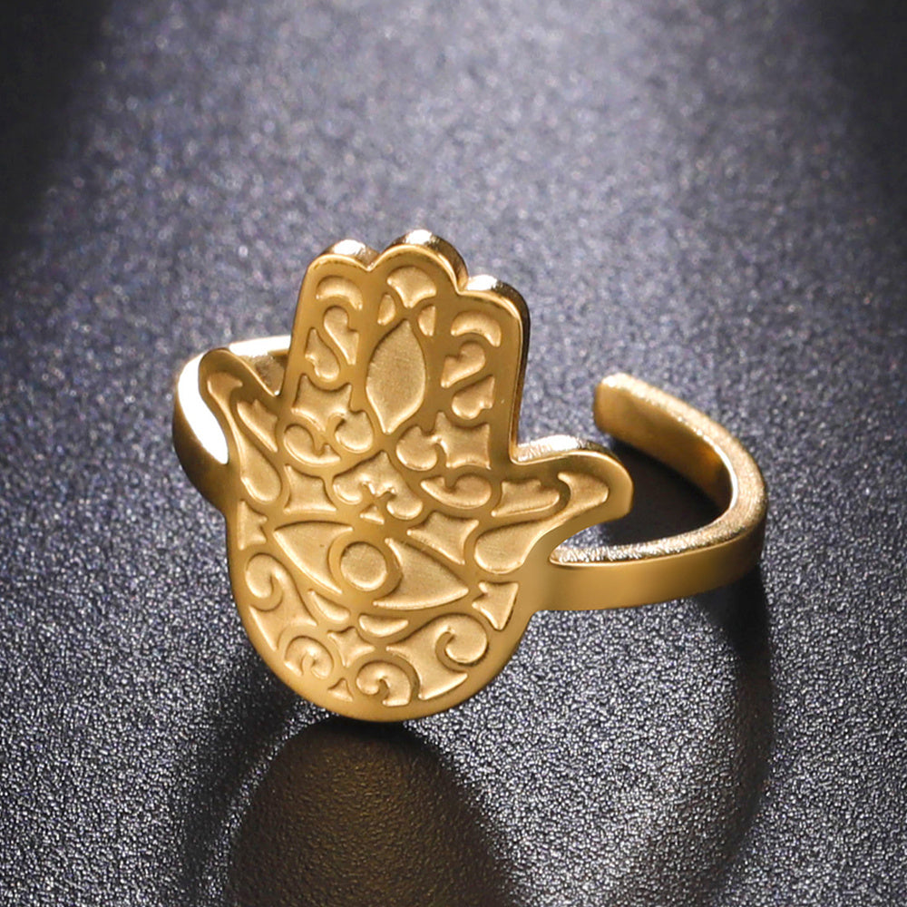 Hamsa Hand Evil Eye Adjustable Ring Stainless Steel