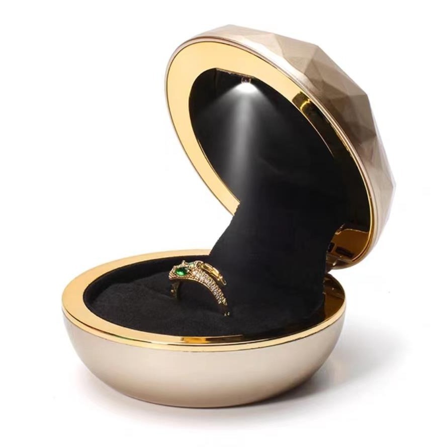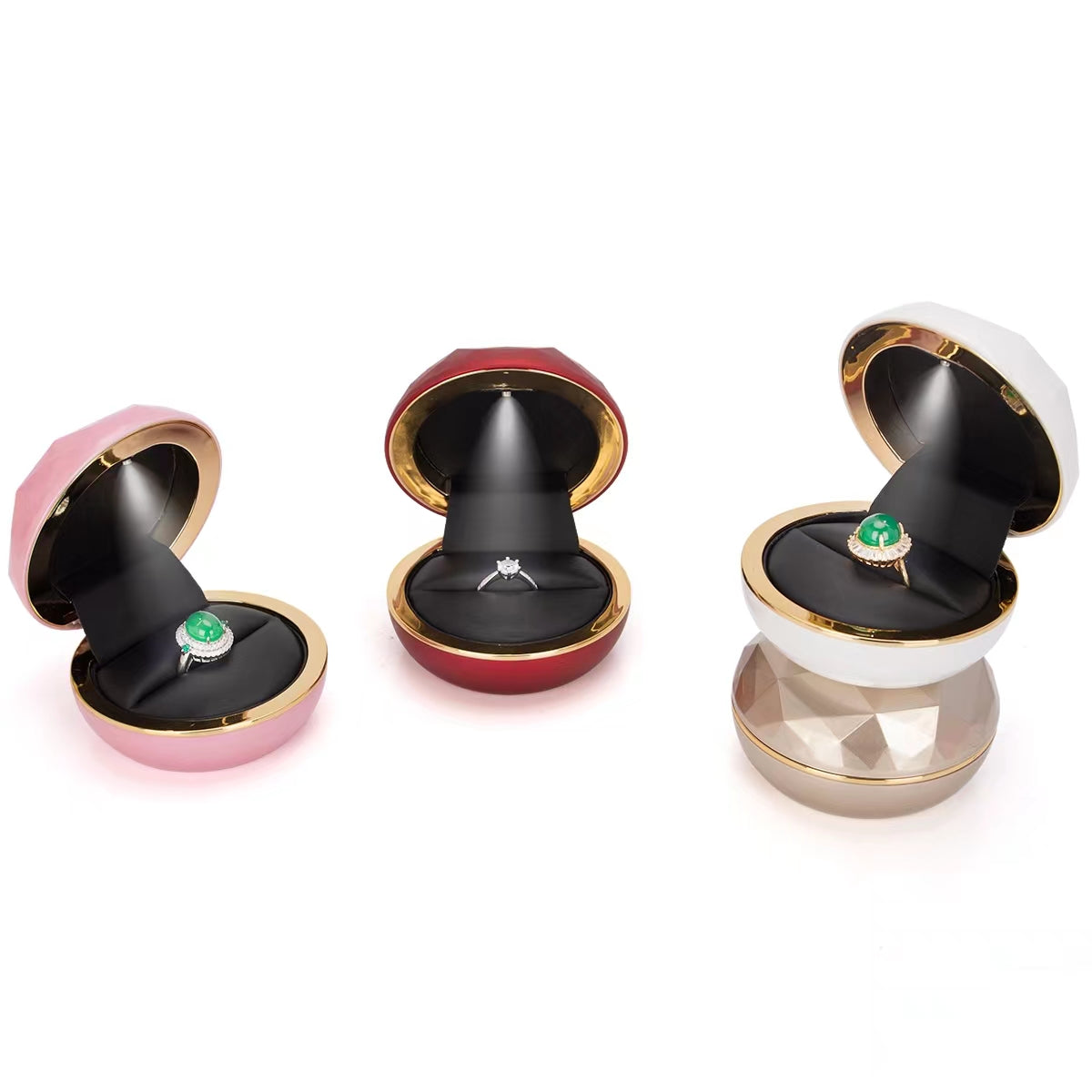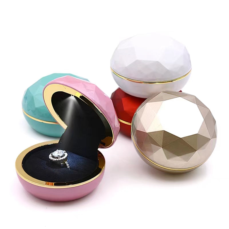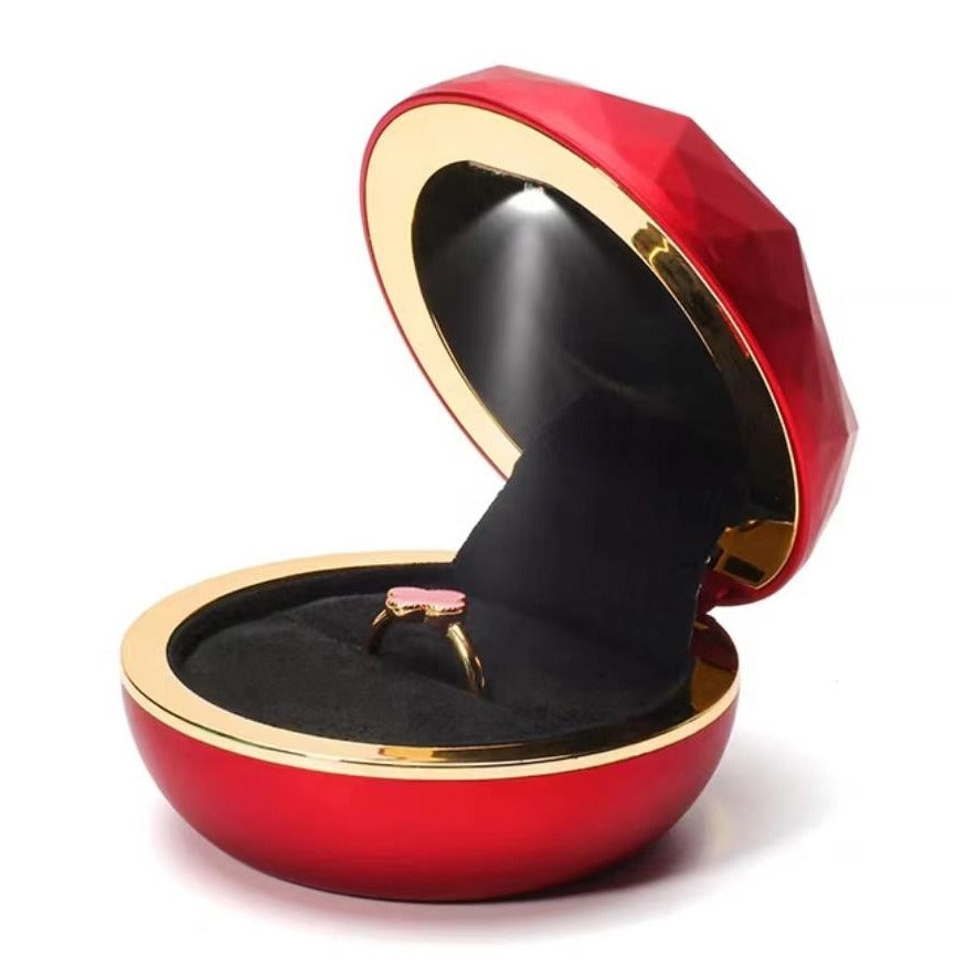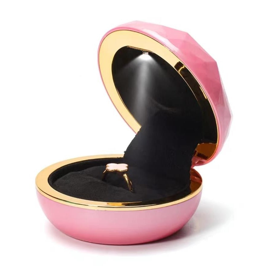 Illuminate your rings with this stylish diamond-shaped LED light ring box. Perfect for showcasing your precious jewelry.