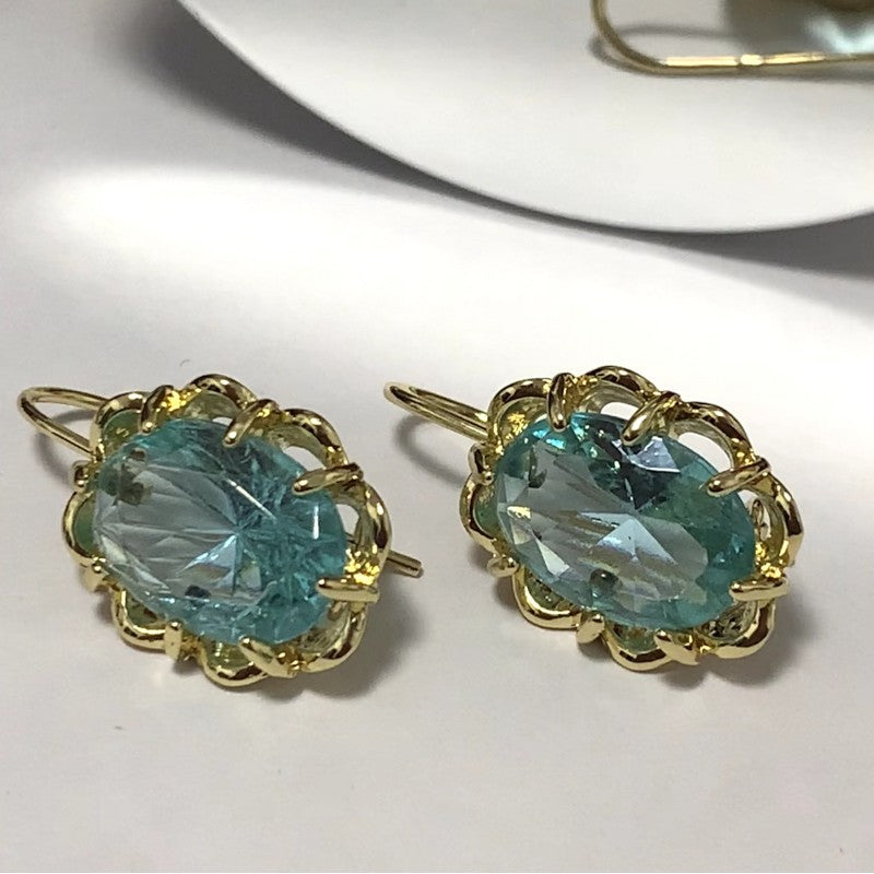 Add a touch of elegance with these gorgeous golden aquamarine earrings. Perfect for weddings or special occasions, these delicate earrings are a must-have for any fashion-forward individual.