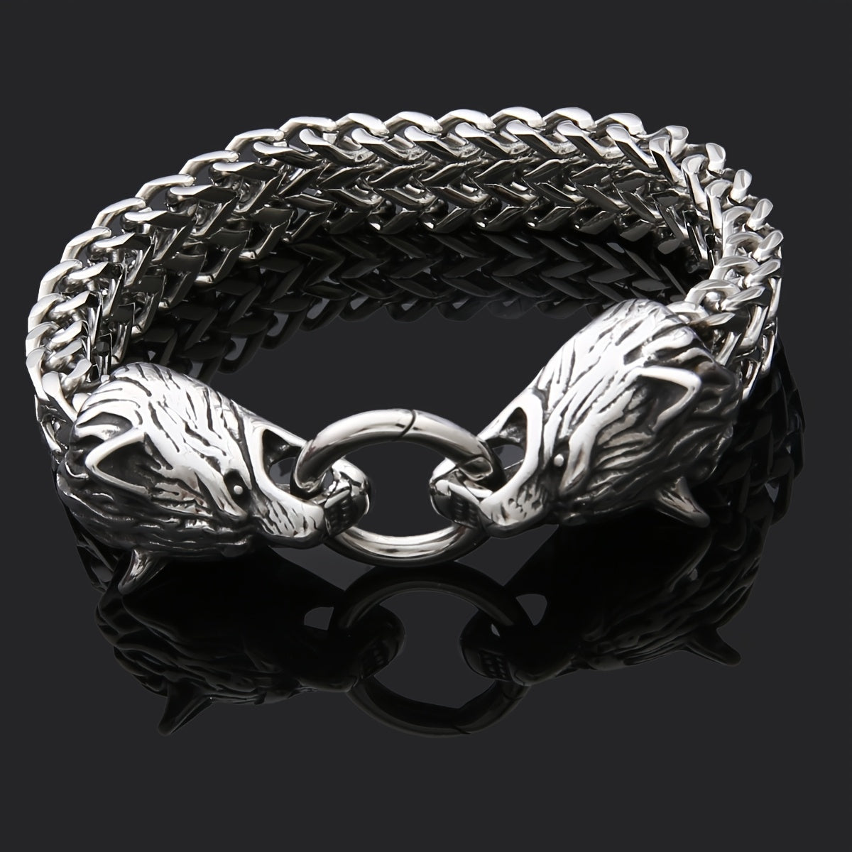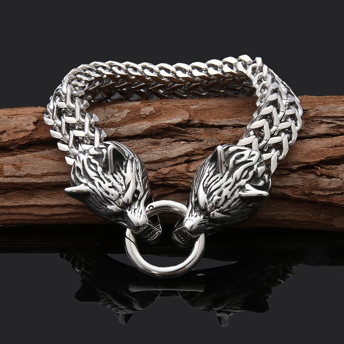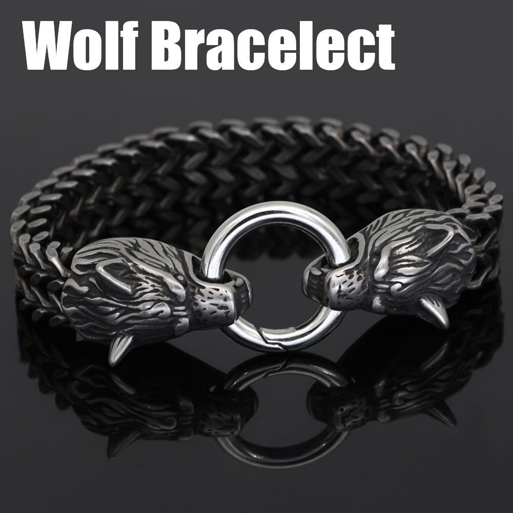 Men's Stainless Steel Wolf Head Bracelet Vintage Personality Viking