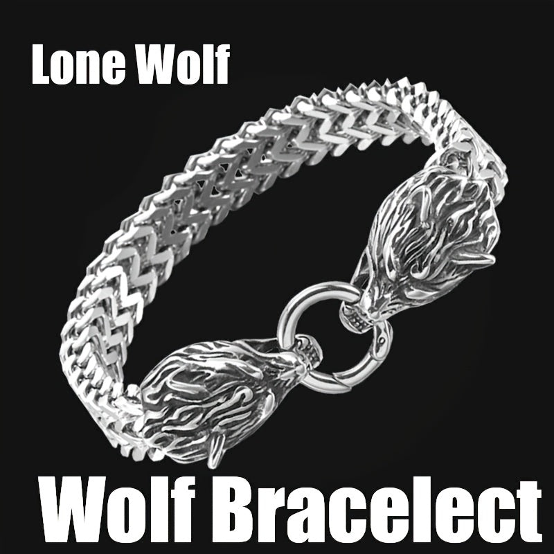 Make a bold statement with this Stainless Steel Wolf Head Bracelet featuring a Viking-inspired design. The perfect accessory for men who appreciate unique and edgy styles.