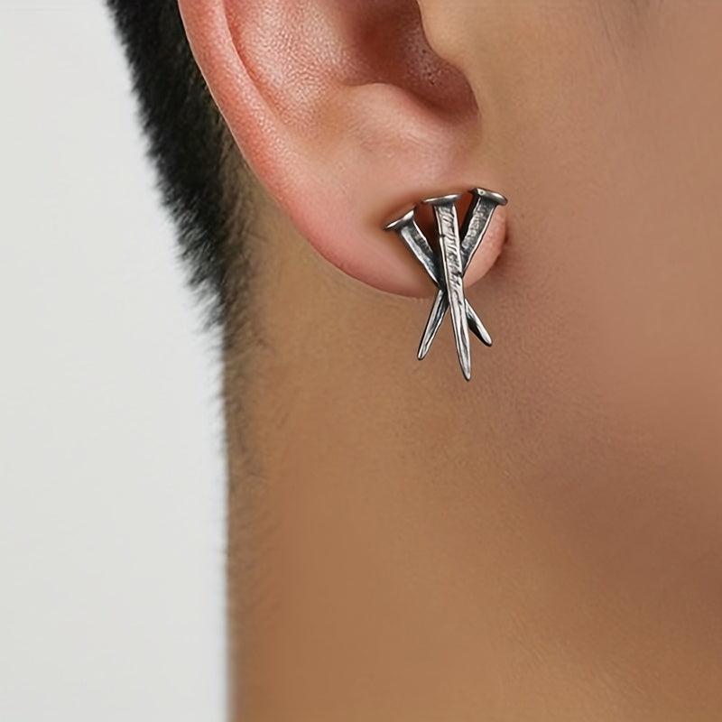 Make a bold statement with this domineering three nails earring. Suitable for both men and women.