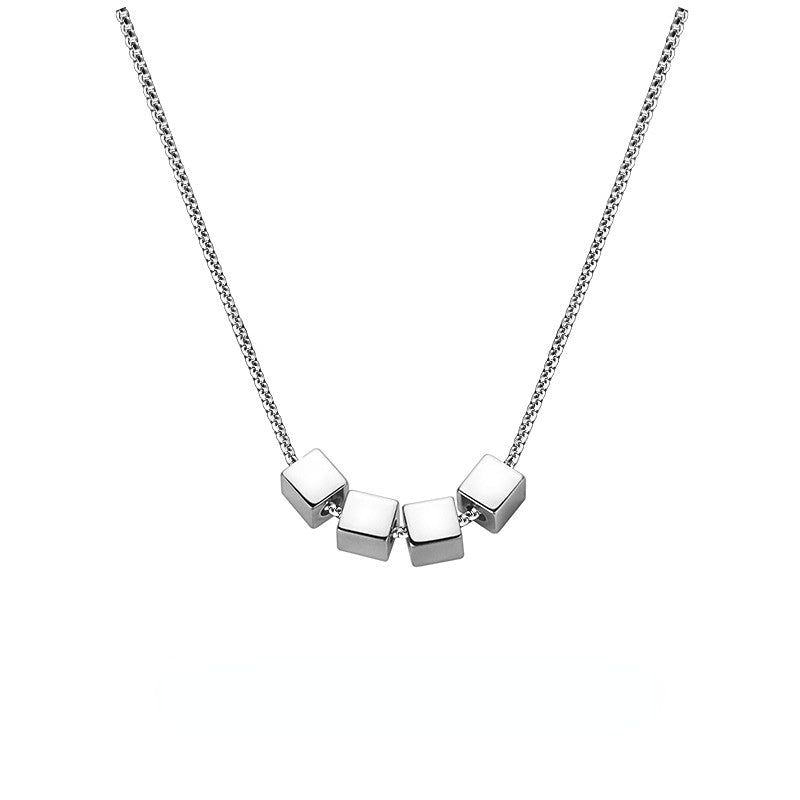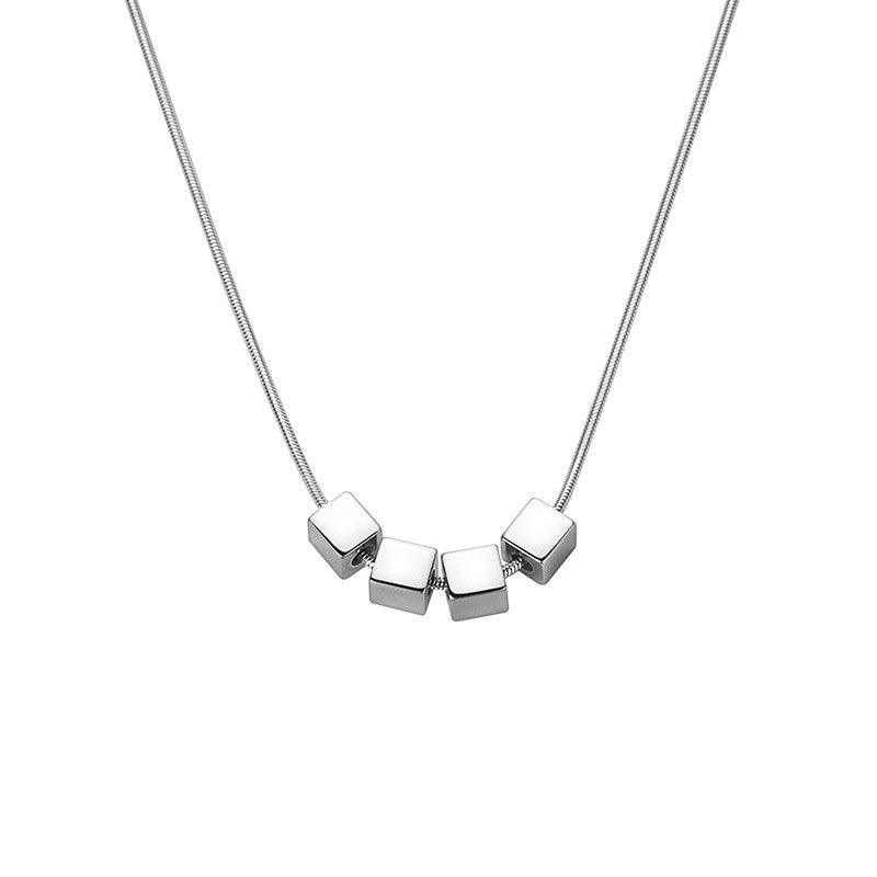 Add a touch of style with this titanium steel geometric sugar cube pendant on a clavicle chain designed for men. It's a perfect accessory for casual or formal wear.
