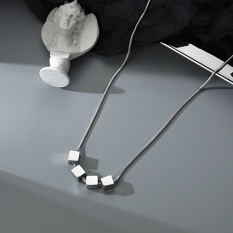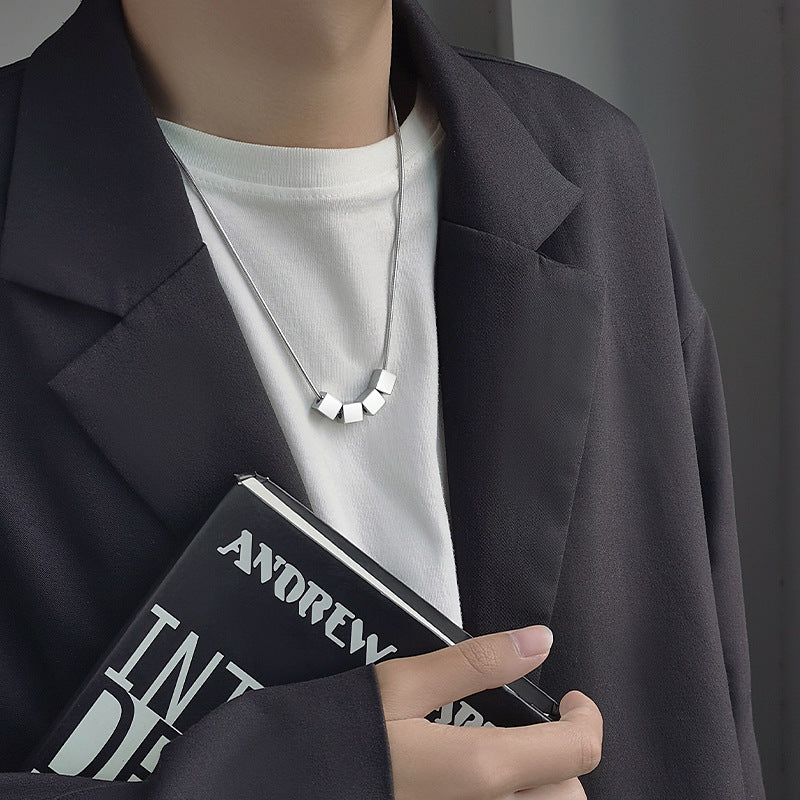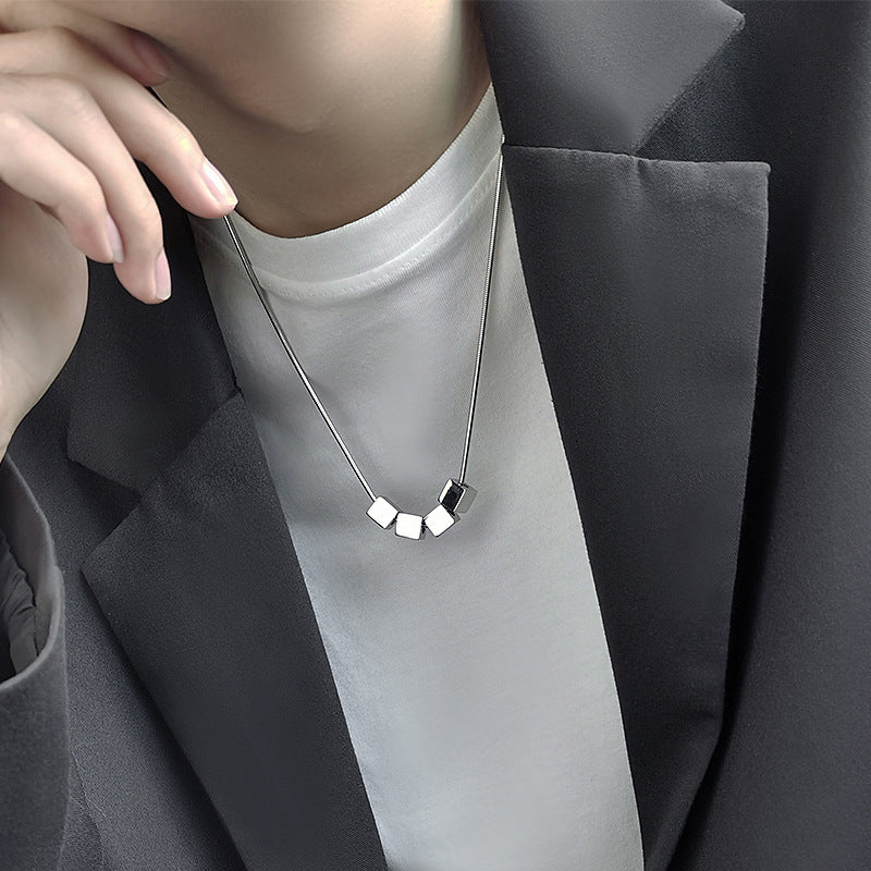 Men's Titanium Steel Geometric Sugar Cube Pendant Clavicle Chain for Men