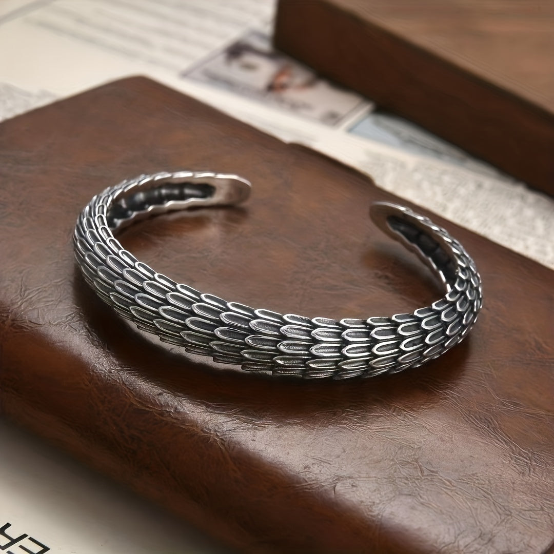 Enhance your street style with this retro Viking dragon scale cuff bracelet, adjustable for a perfect fit. Ideal for motorcycle enthusiasts.