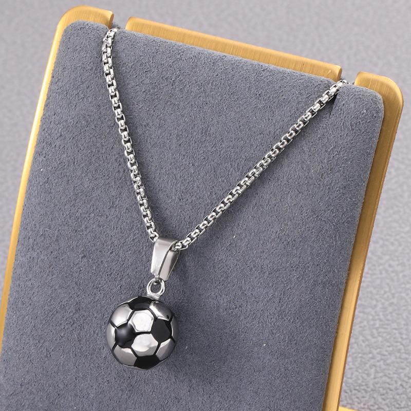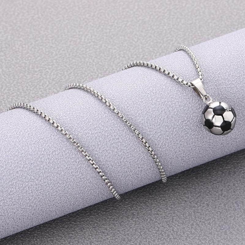 This men's necklace features a vintage silver football pendant made of stainless steel. Perfect for football enthusiasts and adds a stylish touch to any outfit.
