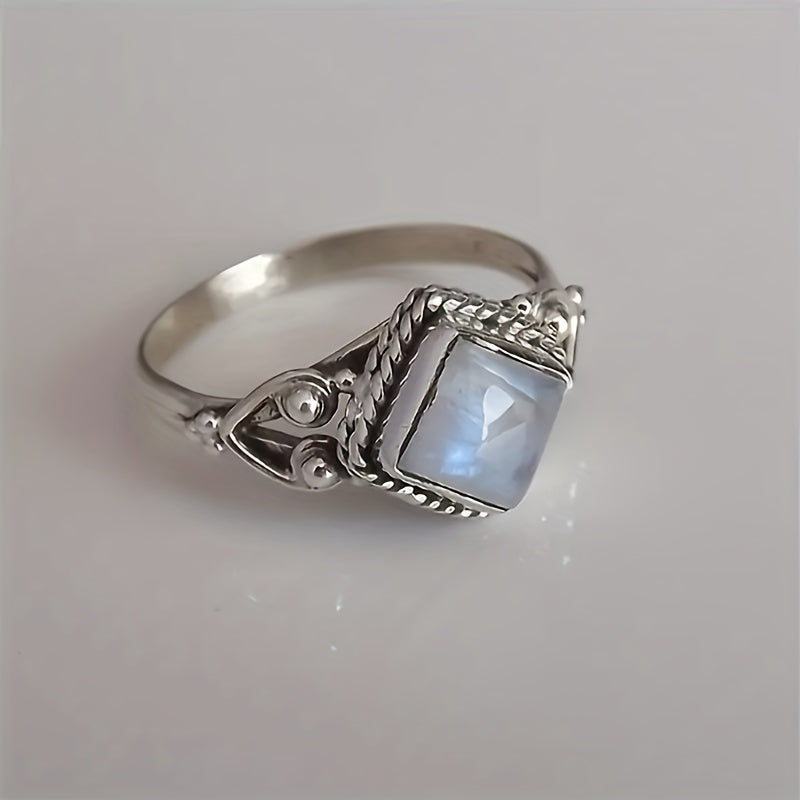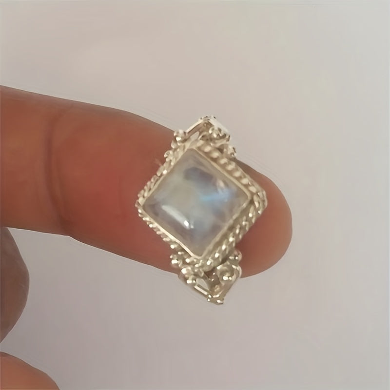 Add a touch of vintage style to your look with this square moonstone ring. Perfect for parties or as a gift.