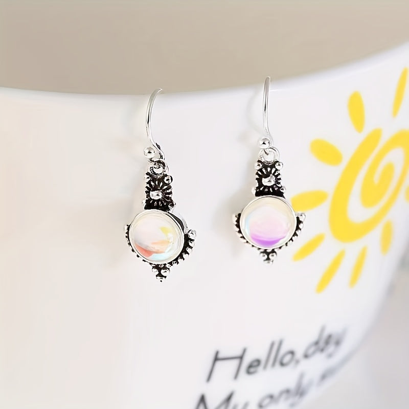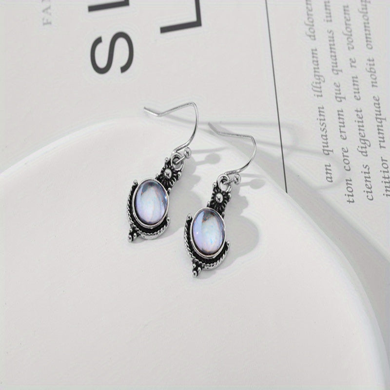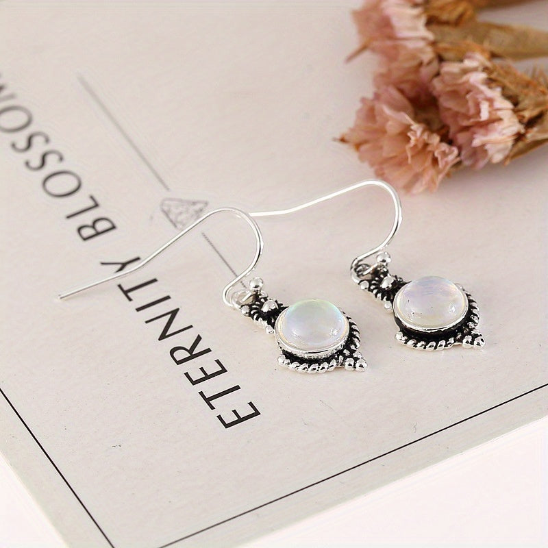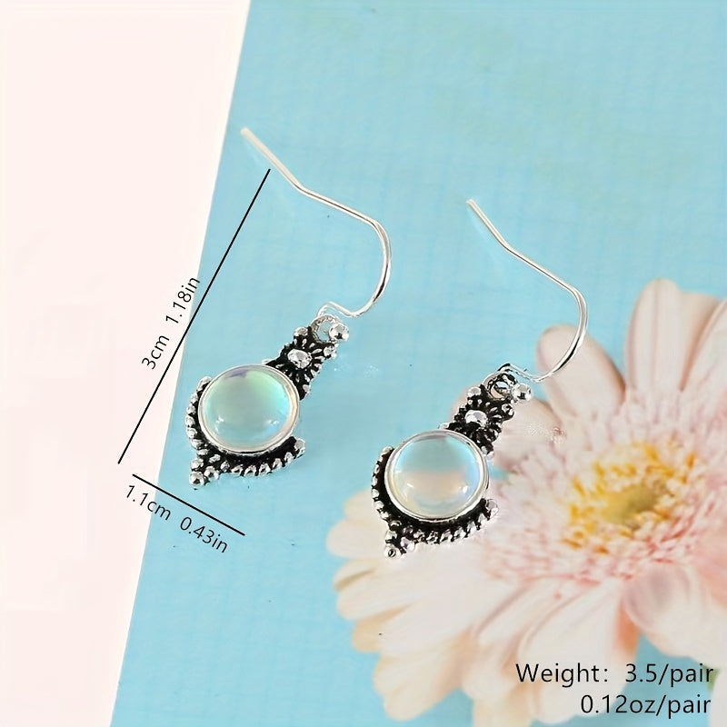 Moonstone Vintage Earrings Rainbow Gemstone Ear Jewelry