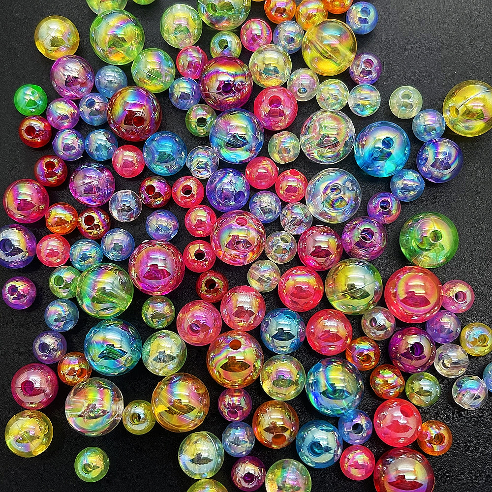 Create stunning jewelry pieces with these transparent multicolor acrylic round pearl beads. Perfect for crafting unique accessories.