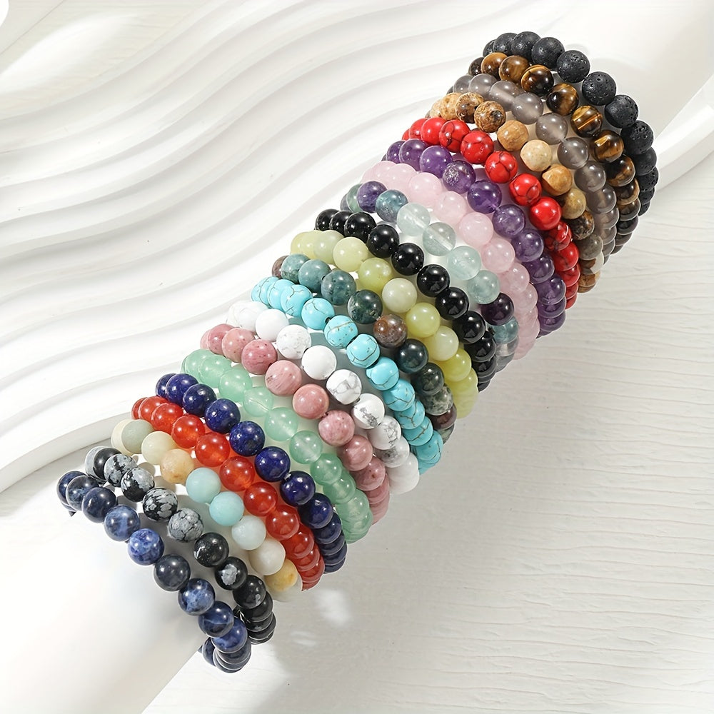 Natural Gem Crystal Stone Bead Bracelet 20 Colors Elastic Rope Graduation Gift