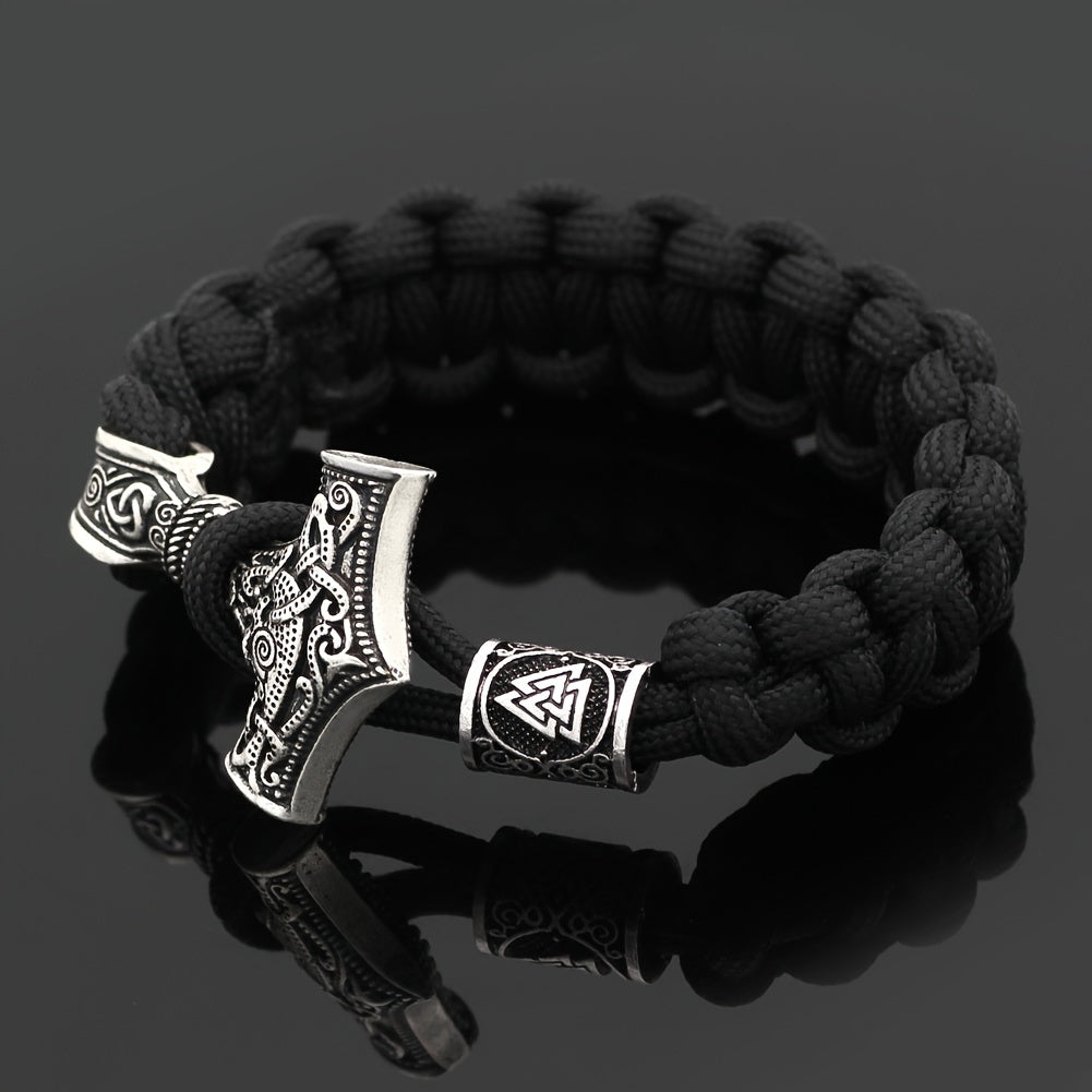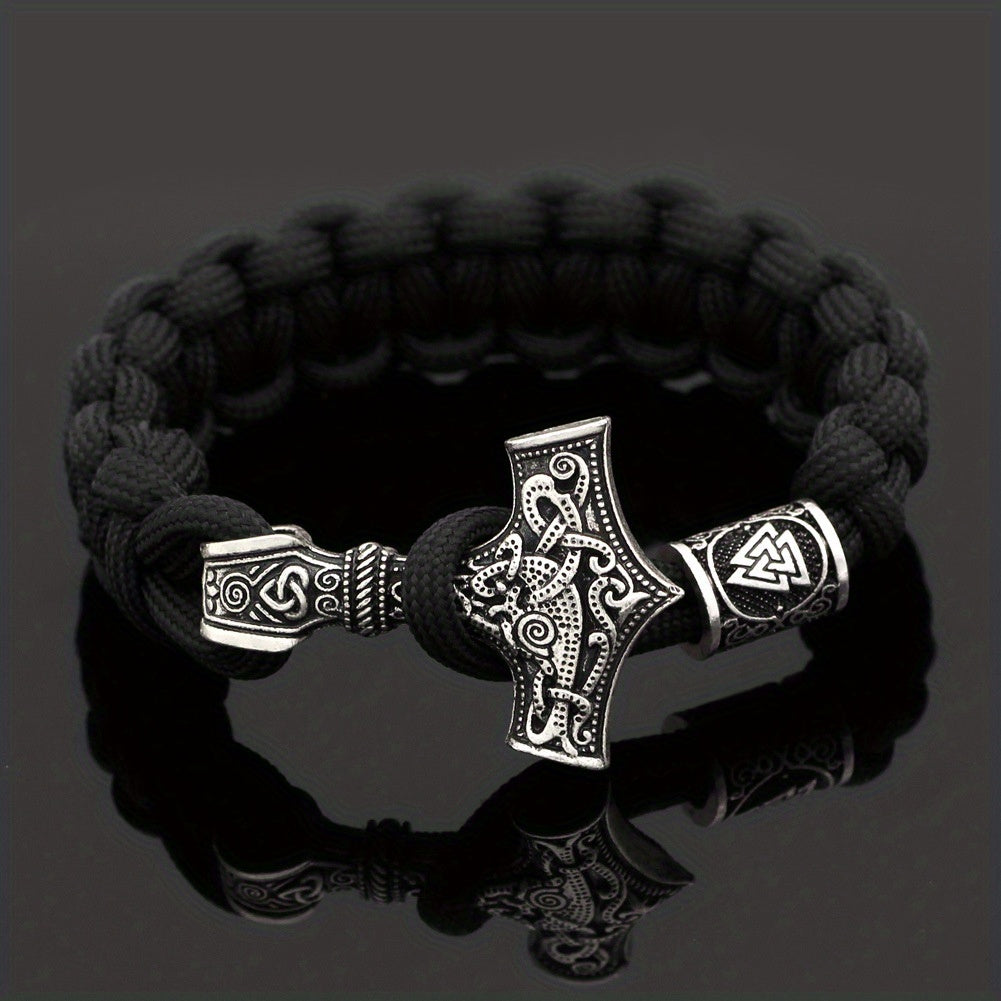 This classic bracelet is a perfect holiday or birthday gift for boyfriends. It features a Nordic Viking hammer design and is carefully braided for a stylish look.